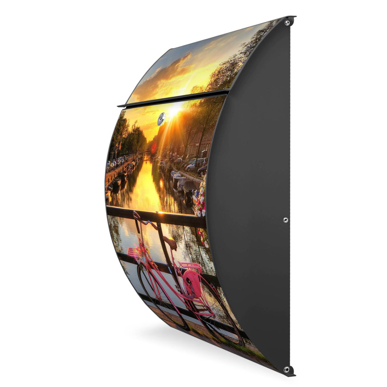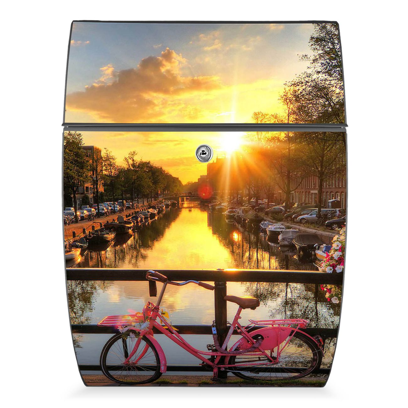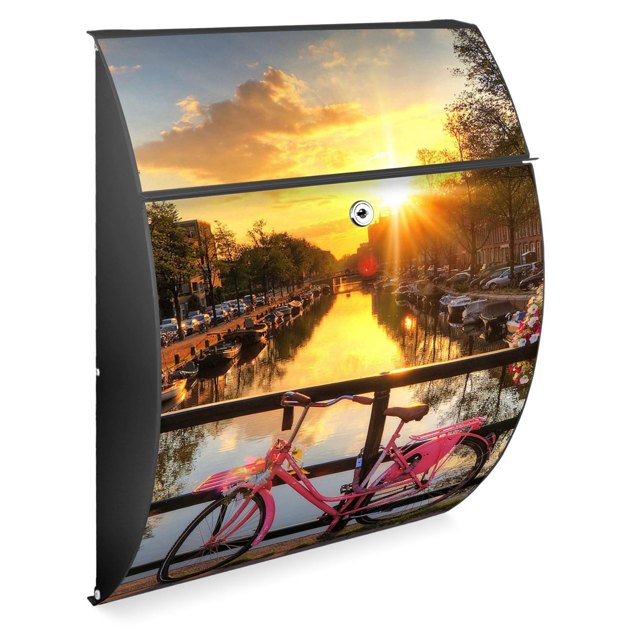 Der Burg Wächter Design Briefkasten mit Motiv Amsterdam Mit Rad bietet Ihnen mit seinem Fassungsvermögen genügend Platz auch für große A4 Sendungen. Auf Wunsch können Sie bei uns den passenden Ständer kaufen und so aus dem Wandbriefkasten einen Standbriefkasten machen.