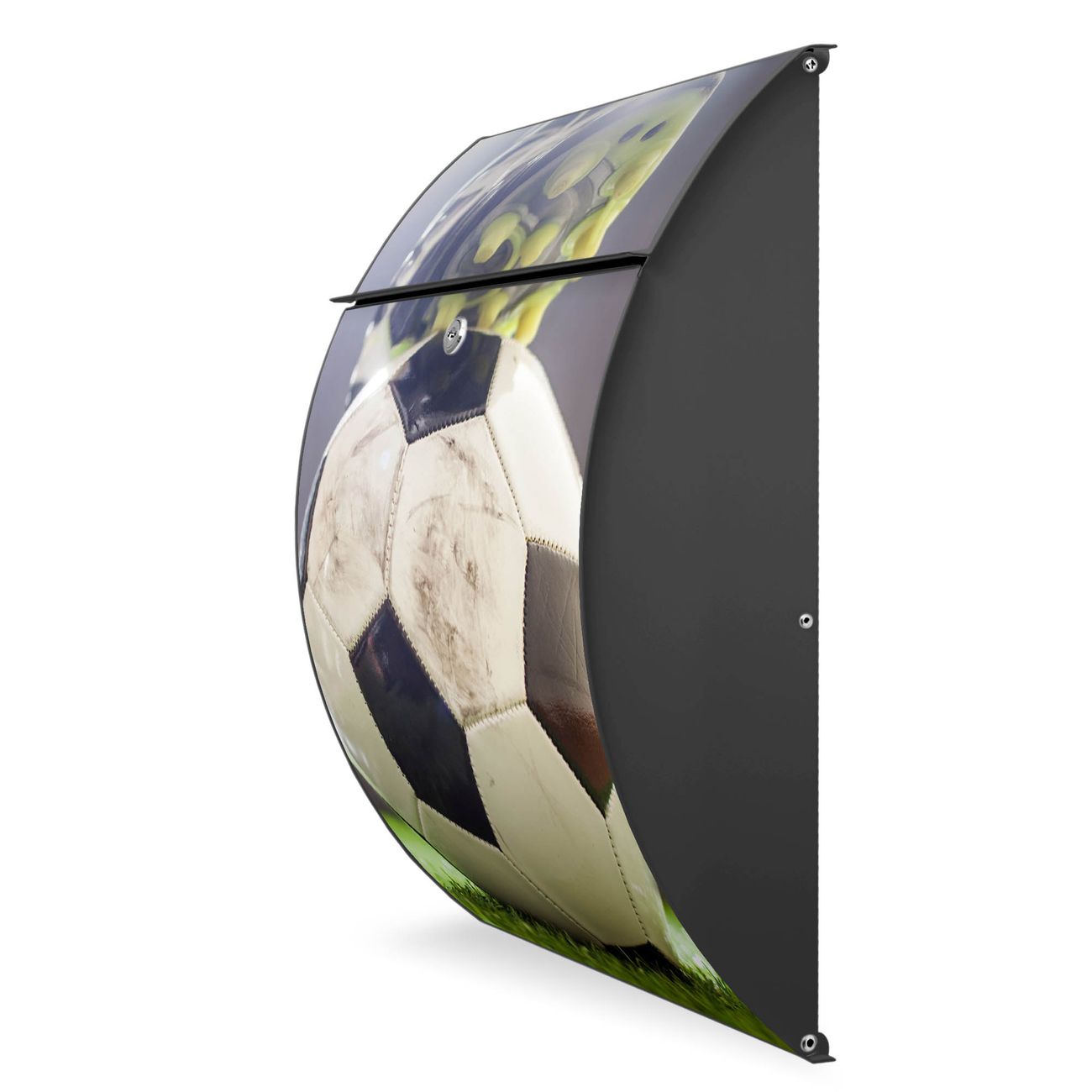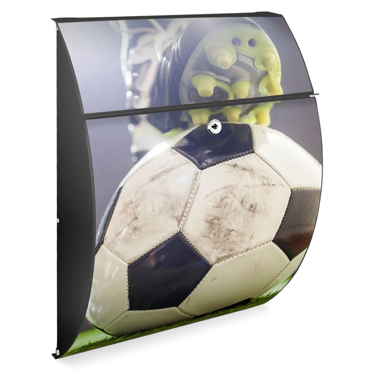 Der Burg Wächter Design Briefkasten mit Motiv Anpfiff bietet Ihnen mit seinem Fassungsvermögen genügend Platz auch für große A4 Sendungen. Auf Wunsch können Sie bei uns den passenden Ständer kaufen und so aus dem Wandbriefkasten einen Standbriefkasten machen.