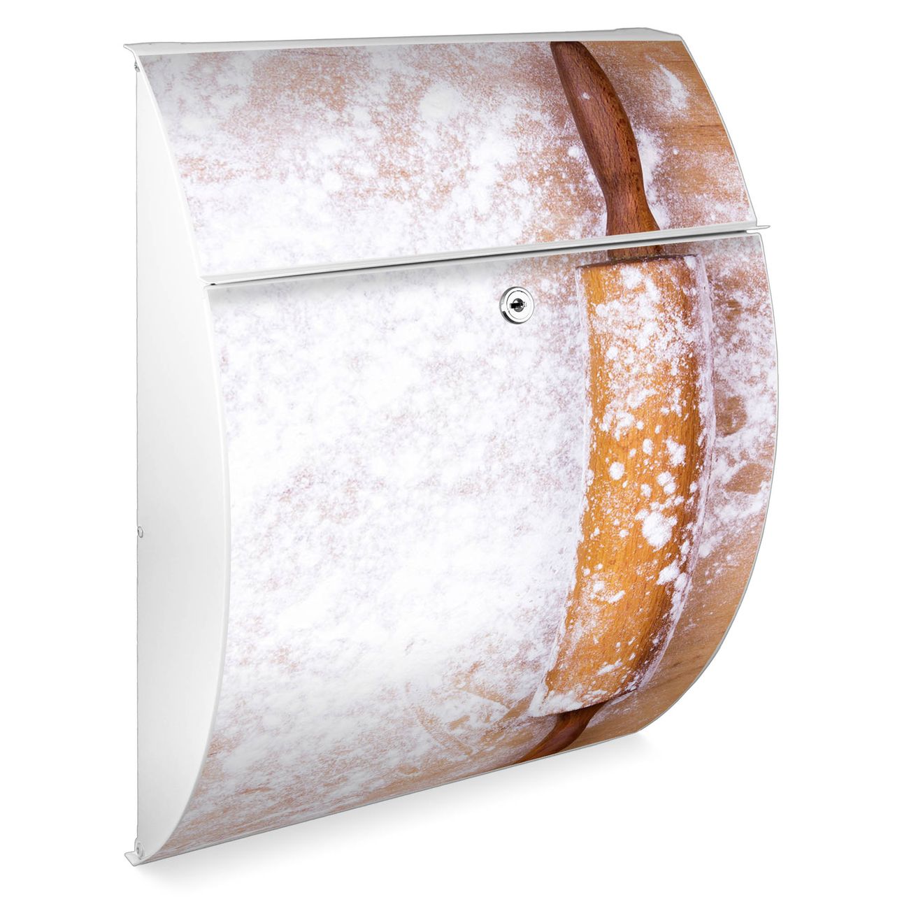 FUNKTION: DESIGN: Das Modell Riviera mit Motiv Backen hat ein sehr ansprechendes und zeitloses Design. Heben Sie Sich von der tristen grauen Masse ab, ohne auf Funktionalität zu verzichten. Der integrierte Öffnungsstopp ermöglicht eine einfache Handhabung beim Entnehmen der Post. DETAILS: Der Postkasten besteht aus vollflächig verzinktem Stahl welcher in weiß lackiert wurde. Das Motiv besteht aus einer wetter- und UV-festen Folie, die mit einem Schutzlaminat überzogen ist, durch die Ihren Briefkasten zusätzlich vor Kratzern geschützt ist. Sie erhalten 2 Schlüssel sowie das passende Montagematerial. NUTZEN: Sie können den Briefkasten sowohl als Wandbriefkasten montieren oder einen passenden Ständer kaufen und als Standbriefkasten einbetonieren. Die Größe bietet genügend Platz für Sendungen aller Art, der Einwurf fasst auch größere A4 Sendungen. BANJADO: Ihr Briefkasten wird in Sachsen in einer kleinen Manufaktur von Hand veredelt. Die Motivfolie ist lösungsmittelfrei und schutzlaminiert, dies sorgt für einen langen Halt. Wir legen großen Wert auf die Verbindung von Funktionalität und Design. Sie erhalten Handarbeit aus Sachsen.