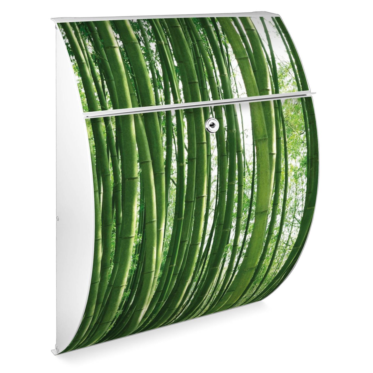 Der weiße Burg Wächter Design Briefkasten mit Motiv Bambus bietet Ihnen mit seinem Fassungsvermögen genügend Platz auch für große A4 Sendungen. Auf Wunsch können Sie bei uns auch den passenden Ständer kaufen und so aus dem Wandbriefkasten einen Standbriefkasten machen.
