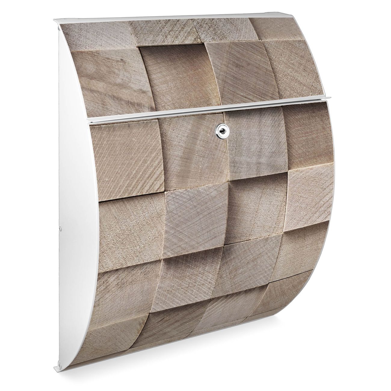 FUNKTION: DESIGN: Das Modell Riviera mit Motiv Bauklötze Relief hat ein sehr ansprechendes und zeitloses Design. Heben Sie Sich von der tristen grauen Masse ab, ohne auf Funktionalität zu verzichten. Der integrierte Öffnungsstopp ermöglicht eine einfache Handhabung beim Entnehmen der Post. DETAILS: Der Postkasten besteht aus vollflächig verzinktem Stahl welcher in weiß lackiert wurde. Das Motiv besteht aus einer wetter- und UV-festen Folie, die mit einem Schutzlaminat überzogen ist, durch die Ihren Briefkasten zusätzlich vor Kratzern geschützt ist. Sie erhalten 2 Schlüssel sowie das passende Montagematerial. NUTZEN: Sie können den Briefkasten sowohl als Wandbriefkasten montieren oder einen passenden Ständer kaufen und als Standbriefkasten einbetonieren. Die Größe bietet genügend Platz für Sendungen aller Art, der Einwurf fasst auch größere A4 Sendungen. BANJADO: Ihr Briefkasten wird in Sachsen in einer kleinen Manufaktur von Hand veredelt. Die Motivfolie ist lösungsmittelfrei und schutzlaminiert, dies sorgt für einen langen Halt. Wir legen großen Wert auf die Verbindung von Funktionalität und Design. Sie erhalten Handarbeit aus Sachsen.