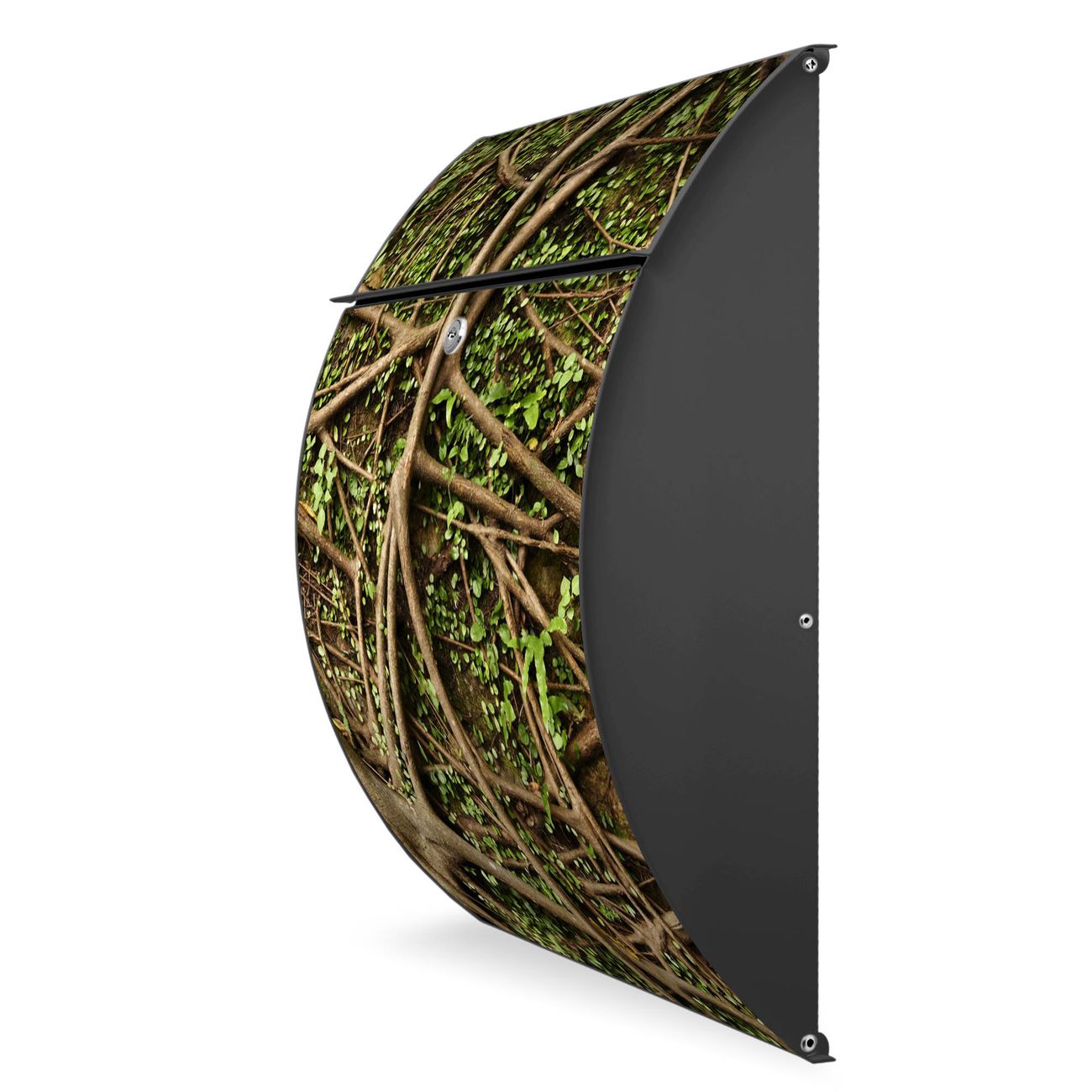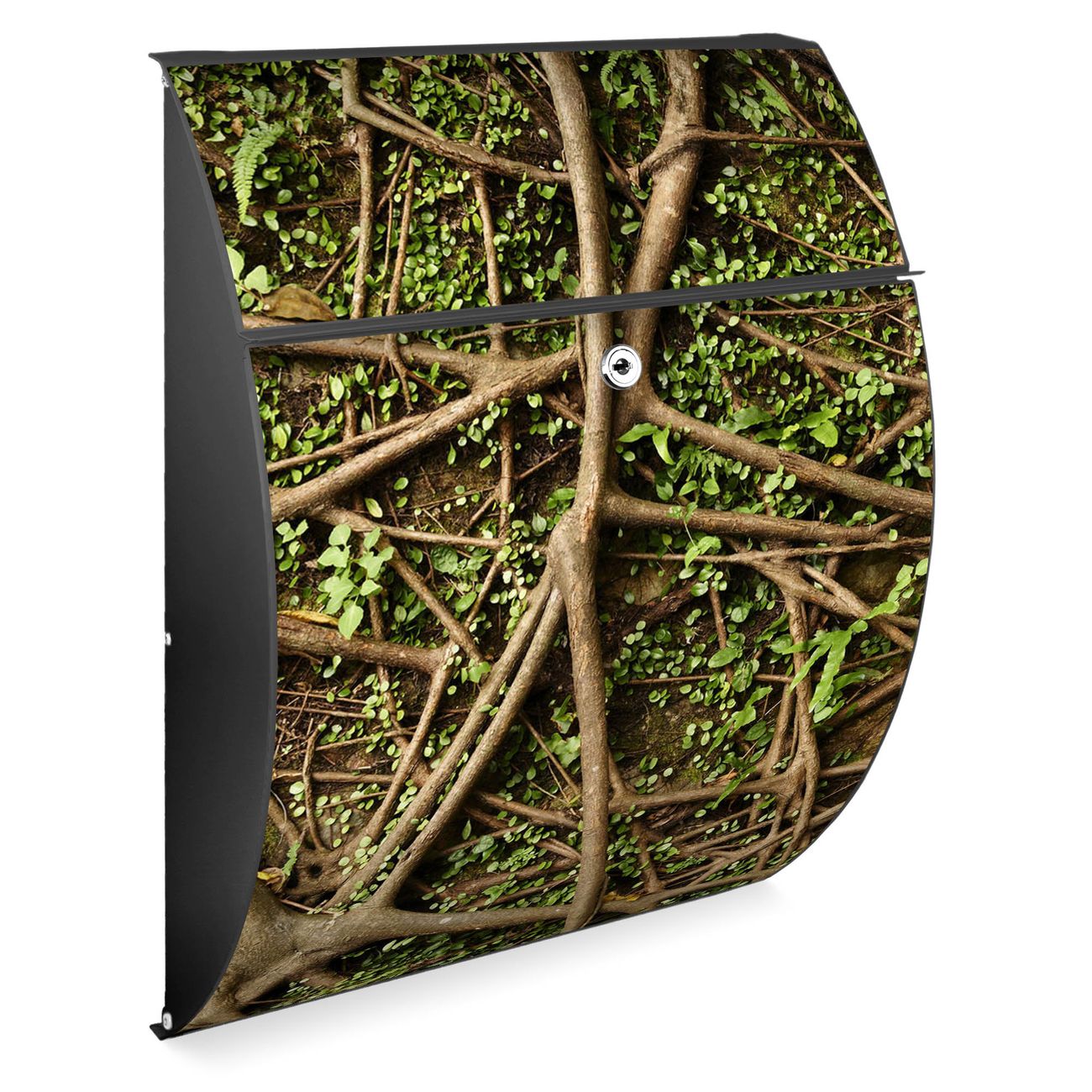 FUNKTION: DESIGN: Das Modell Riviera mit Motiv Baumwurzel hat ein sehr ansprechendes und zeitloses Design. Heben Sie Sich von der tristen grauen Masse ab, ohne auf Funktionalität zu verzichten. Der integrierte Öffnungsstopp ermöglicht eine einfache Handhabung beim Entnehmen der Post. DETAILS: Der Postkasten besteht aus vollflächig verzinktem Stahl welcher in Anthrazit lackiert wurde. Das Motiv besteht aus einer wetter- und UV-festen Folie, die mit einem Schutzlaminat überzogen ist, durch die Ihren Briefkasten zusätzlich vor Kratzern geschützt ist. Sie erhalten 2 Schlüssel sowie das passende Montagematerial. NUTZEN: Sie können den Briefkasten sowohl als Wandbriefkasten montieren oder einen passenden Ständer kaufen und als Standbriefkasten einbetonieren. Die Größe bietet genügend Platz für Sendungen aller Art, der Einwurf fasst auch größere A4 Sendungen. BANJADO: Ihr Briefkasten wird in Sachsen in einer kleinen Manufaktur von Hand veredelt. Die Motivfolie ist lösungsmittelfrei und schutzlaminiert, dies sorgt für einen langen Halt. Wir legen großen Wert auf die Verbindung von Funktionalität und Design. Sie erhalten Handarbeit aus Sachsen.