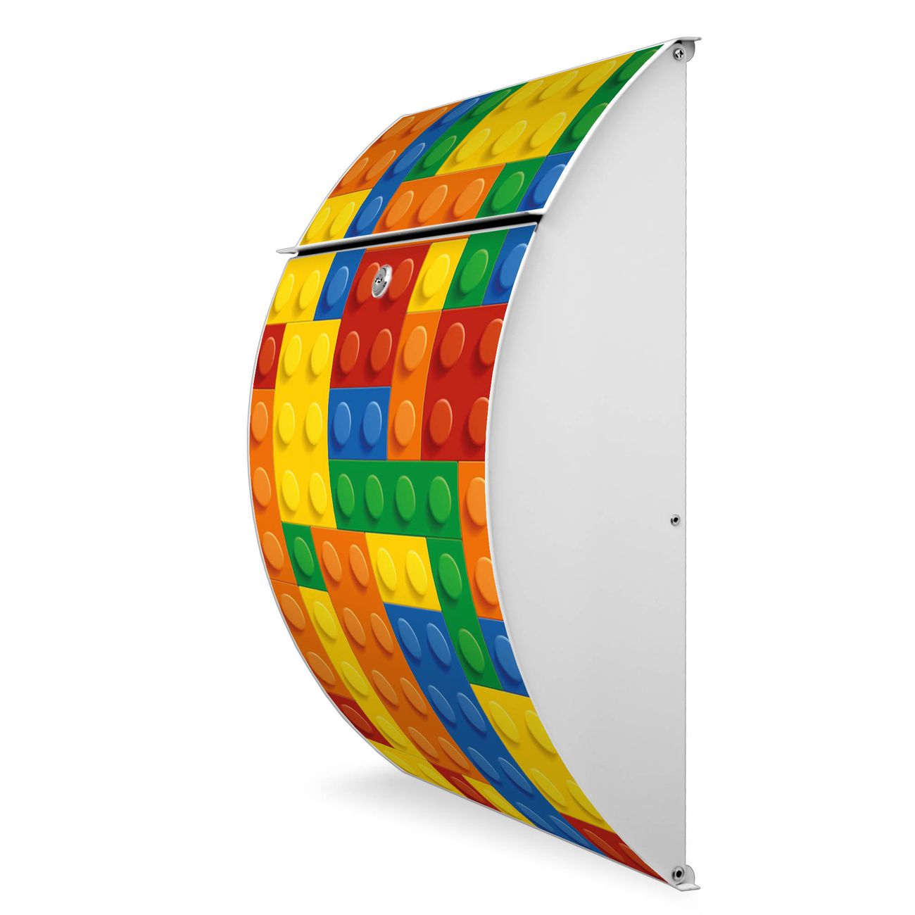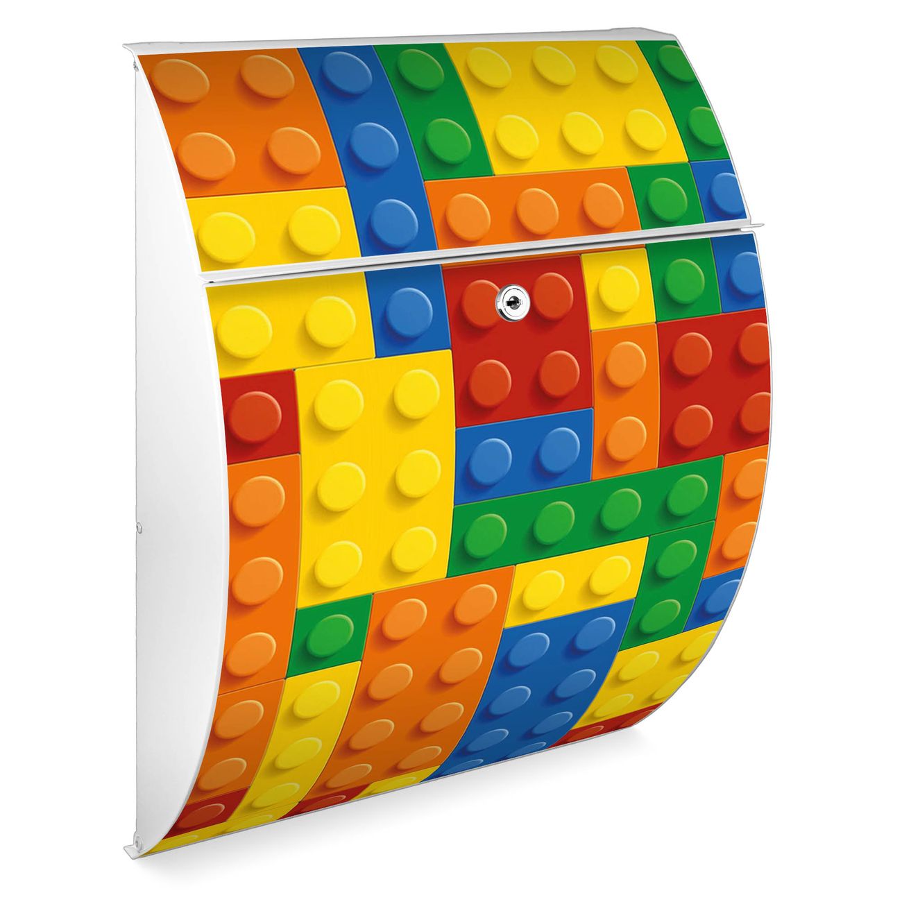Der weiße Burg Wächter Design Briefkasten mit Motiv Bausteine bietet Ihnen mit seinem Fassungsvermögen genügend Platz auch für große A4 Sendungen. Auf Wunsch können Sie bei uns auch den passenden Ständer kaufen und so aus dem Wandbriefkasten einen Standbriefkasten machen.