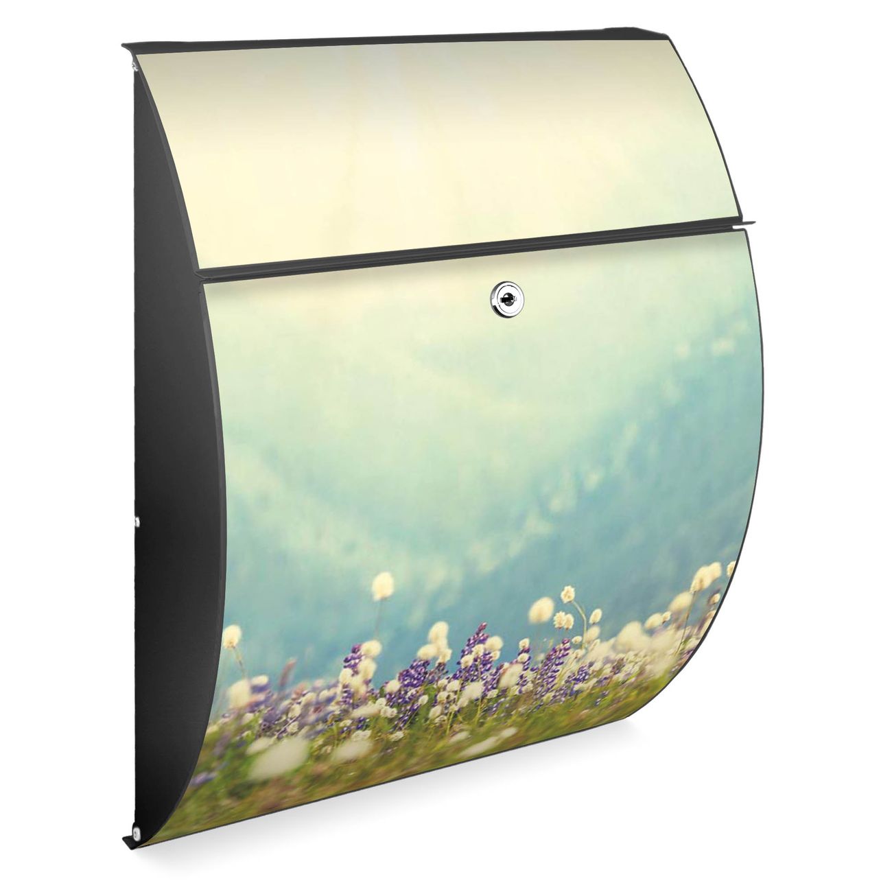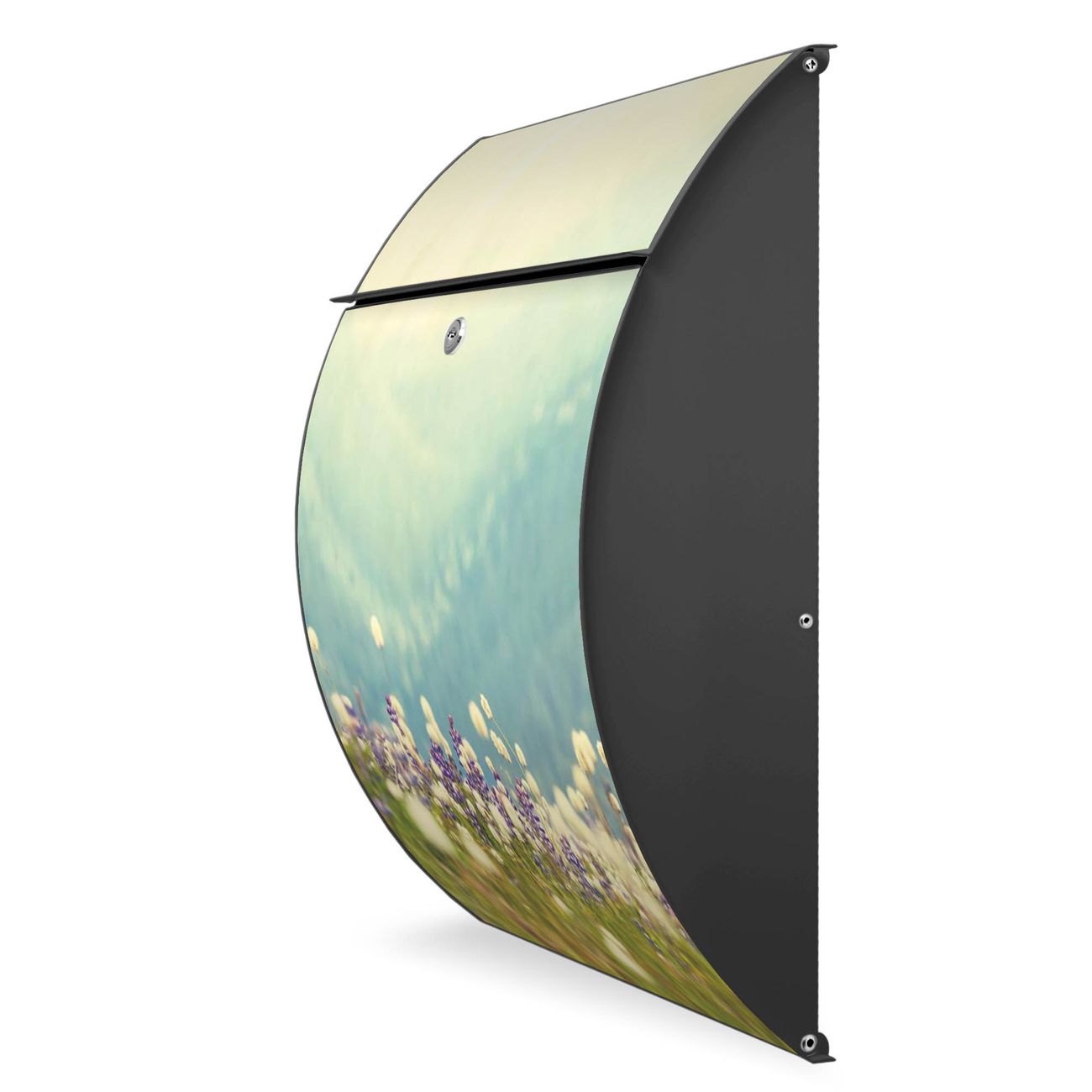 Der Burg Wächter Design Briefkasten mit Motiv Bergwiese bietet Ihnen mit seinem Fassungsvermögen genügend Platz auch für große A4 Sendungen. Auf Wunsch können Sie bei uns den passenden Ständer kaufen und so aus dem Wandbriefkasten einen Standbriefkasten machen.