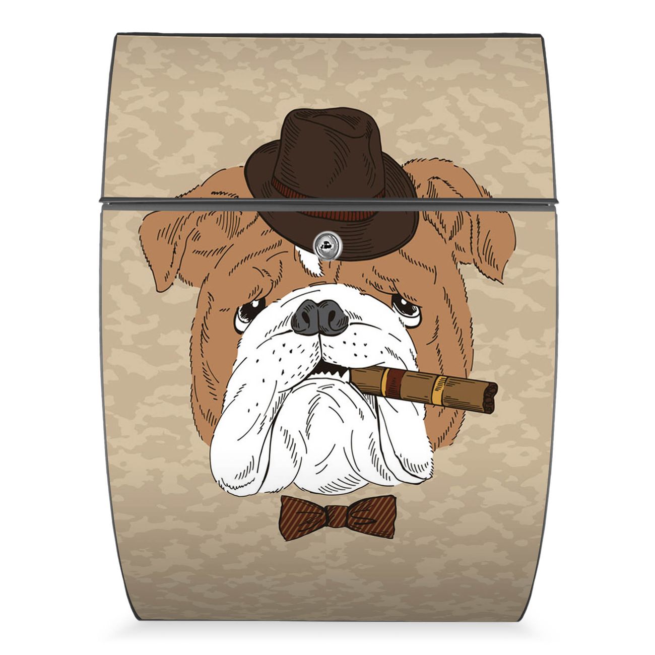 FUNKTION: DESIGN: Das Modell Riviera mit Motiv Big Daddy hat ein sehr ansprechendes und zeitloses Design. Heben Sie Sich von der tristen grauen Masse ab, ohne auf Funktionalität zu verzichten. Der integrierte Öffnungsstopp ermöglicht eine einfache Handhabung beim Entnehmen der Post. DETAILS: Der Postkasten besteht aus vollflächig verzinktem Stahl welcher in Anthrazit lackiert wurde. Das Motiv besteht aus einer wetter- und UV-festen Folie, die mit einem Schutzlaminat überzogen ist, durch die Ihren Briefkasten zusätzlich vor Kratzern geschützt ist. Sie erhalten 2 Schlüssel sowie das passende Montagematerial. NUTZEN: Sie können den Briefkasten sowohl als Wandbriefkasten montieren oder einen passenden Ständer kaufen und als Standbriefkasten einbetonieren. Die Größe bietet genügend Platz für Sendungen aller Art, der Einwurf fasst auch größere A4 Sendungen. BANJADO: Ihr Briefkasten wird in Sachsen in einer kleinen Manufaktur von Hand veredelt. Die Motivfolie ist lösungsmittelfrei und schutzlaminiert, dies sorgt für einen langen Halt. Wir legen großen Wert auf die Verbindung von Funktionalität und Design. Sie erhalten Handarbeit aus Sachsen.