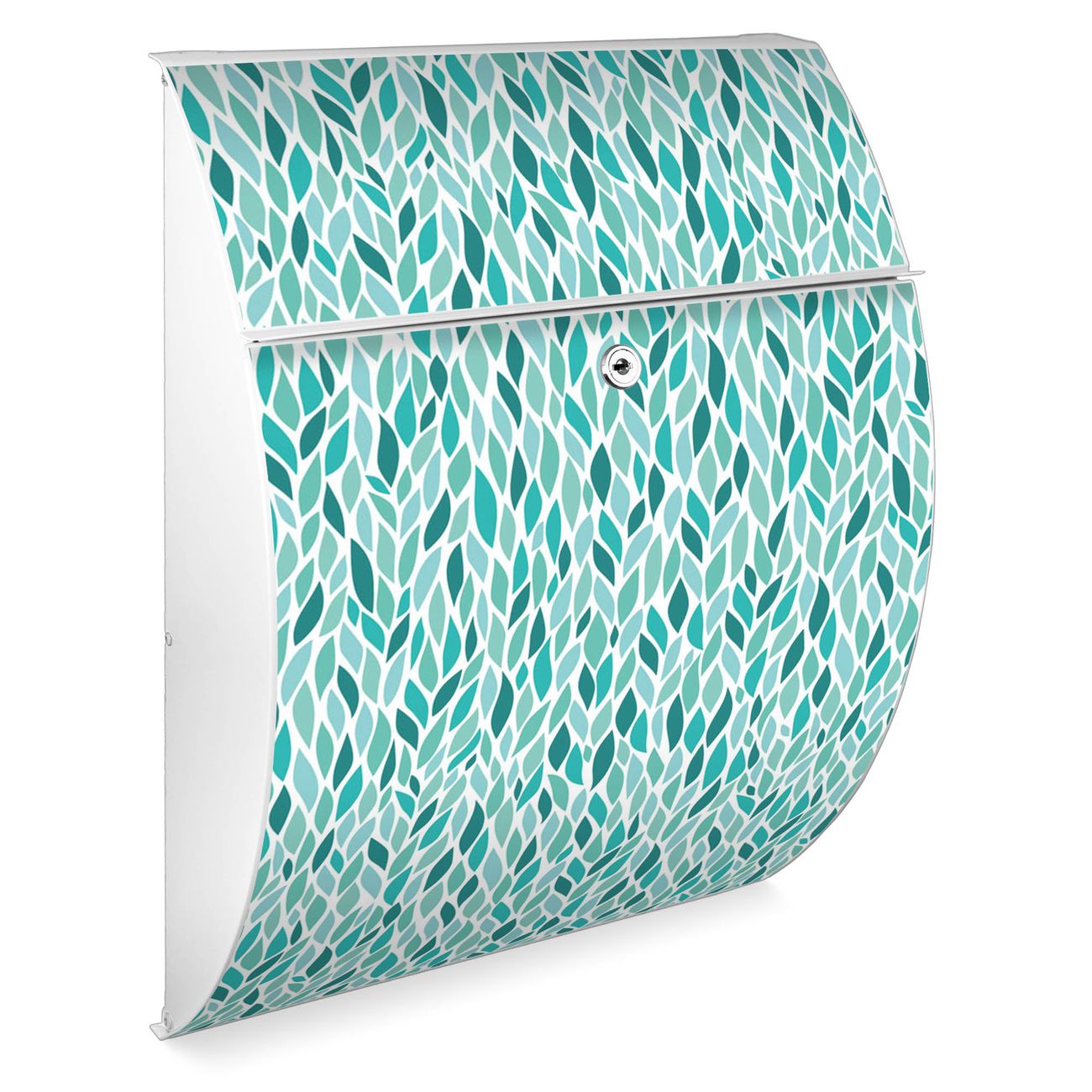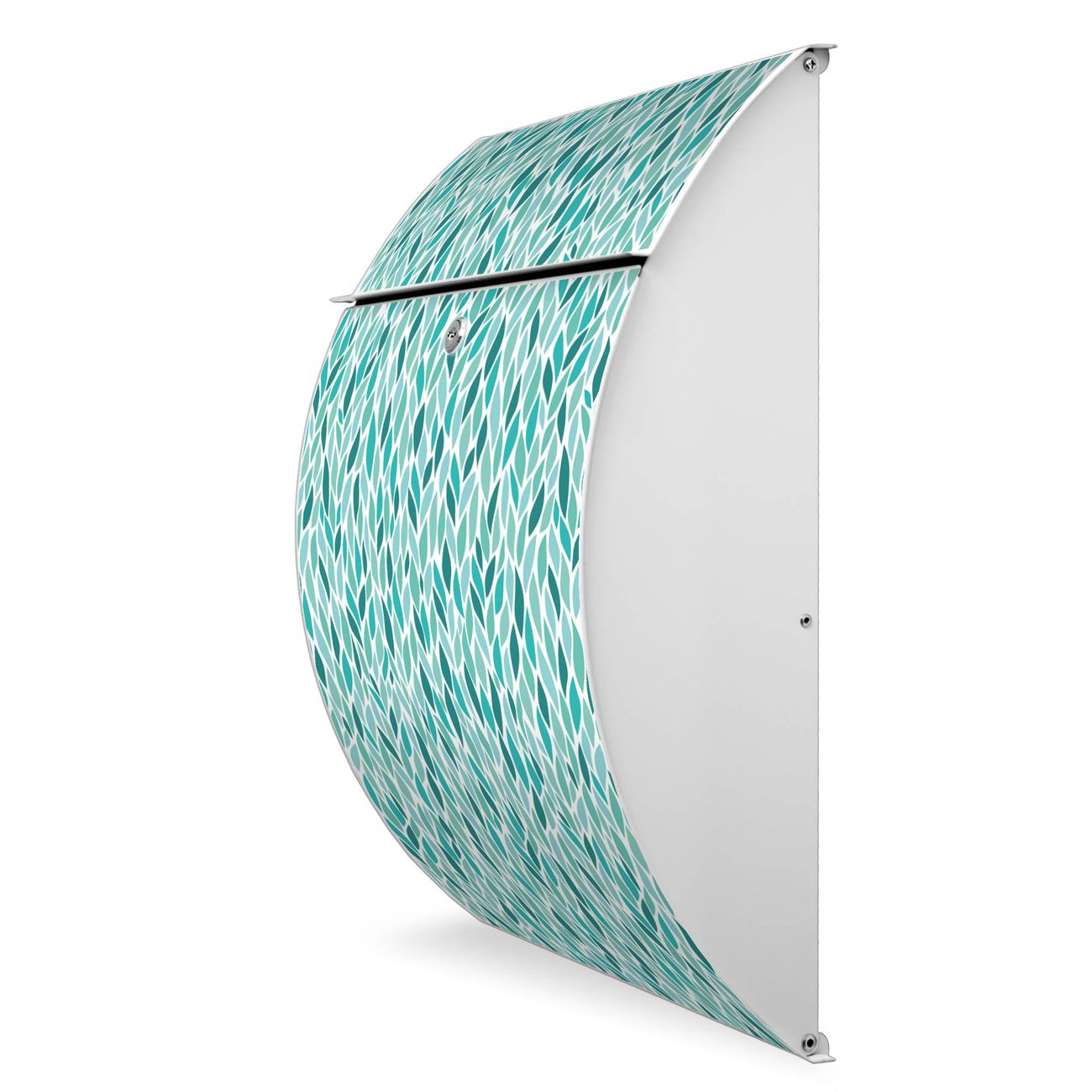 Der weiße Burg Wächter Design Briefkasten mit Motiv Blätter Mint bietet Ihnen mit seinem Fassungsvermögen genügend Platz auch für große A4 Sendungen. Auf Wunsch können Sie bei uns auch den passenden Ständer kaufen und so aus dem Wandbriefkasten einen Standbriefkasten machen.