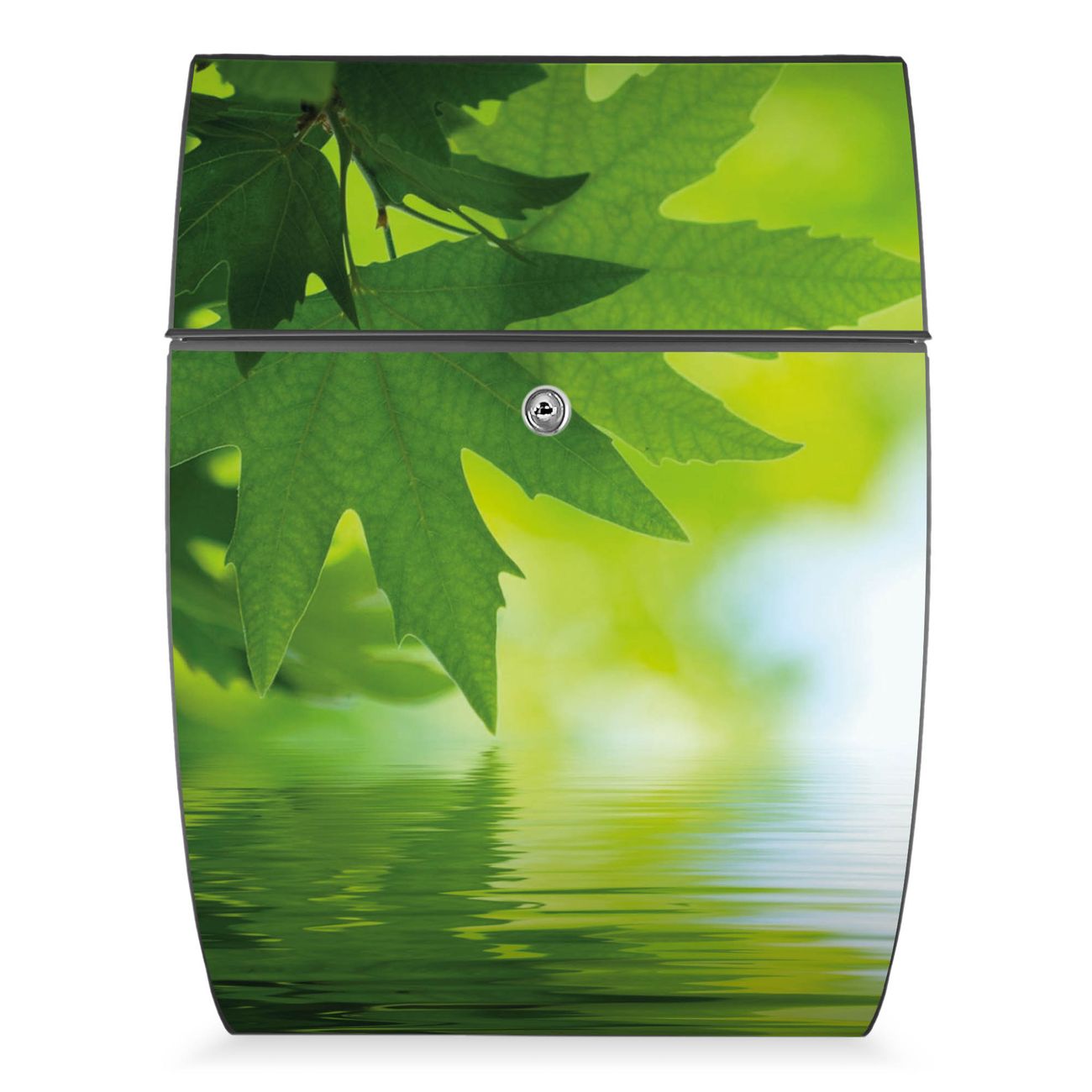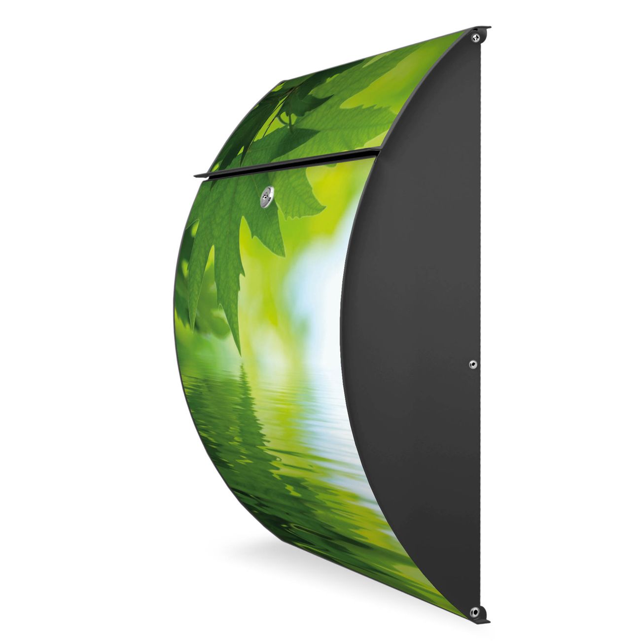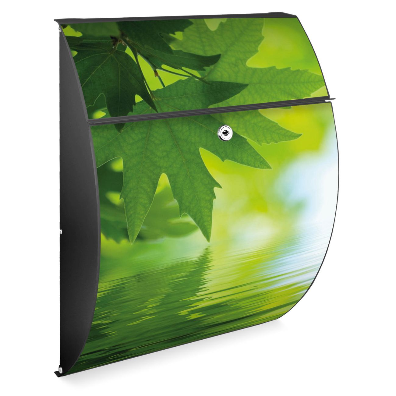 FUNKTION: DESIGN: Das Modell Riviera mit Motiv Blättertraum hat ein sehr ansprechendes und zeitloses Design. Heben Sie Sich von der tristen grauen Masse ab, ohne auf Funktionalität zu verzichten. Der integrierte Öffnungsstopp ermöglicht eine einfache Handhabung beim Entnehmen der Post. DETAILS: Der Postkasten besteht aus vollflächig verzinktem Stahl welcher in Anthrazit lackiert wurde. Das Motiv besteht aus einer wetter- und UV-festen Folie, die mit einem Schutzlaminat überzogen ist, durch die Ihren Briefkasten zusätzlich vor Kratzern geschützt ist. Sie erhalten 2 Schlüssel sowie das passende Montagematerial. NUTZEN: Sie können den Briefkasten sowohl als Wandbriefkasten montieren oder einen passenden Ständer kaufen und als Standbriefkasten einbetonieren. Die Größe bietet genügend Platz für Sendungen aller Art, der Einwurf fasst auch größere A4 Sendungen. BANJADO: Ihr Briefkasten wird in Sachsen in einer kleinen Manufaktur von Hand veredelt. Die Motivfolie ist lösungsmittelfrei und schutzlaminiert, dies sorgt für einen langen Halt. Wir legen großen Wert auf die Verbindung von Funktionalität und Design. Sie erhalten Handarbeit aus Sachsen.
