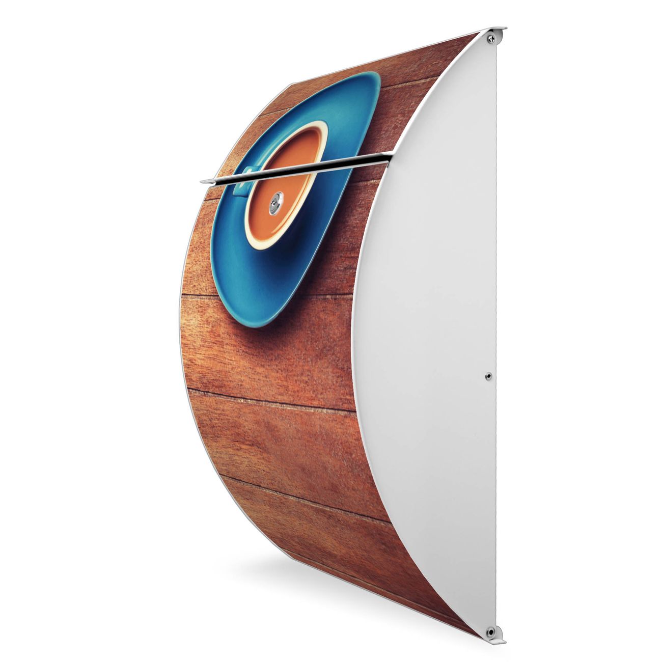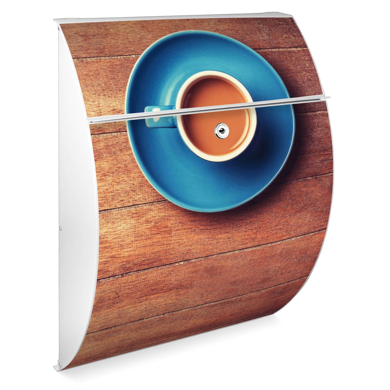 Der weiße Burg Wächter Design Briefkasten mit Motiv Blaue Tasse bietet Ihnen mit seinem Fassungsvermögen genügend Platz auch für große A4 Sendungen. Auf Wunsch können Sie bei uns auch den passenden Ständer kaufen und so aus dem Wandbriefkasten einen Standbriefkasten machen.
