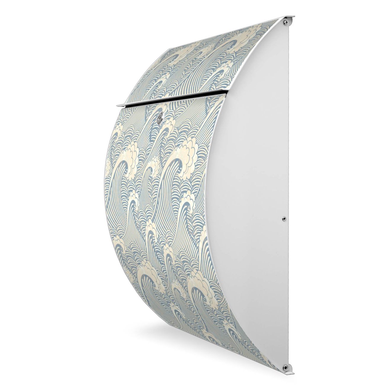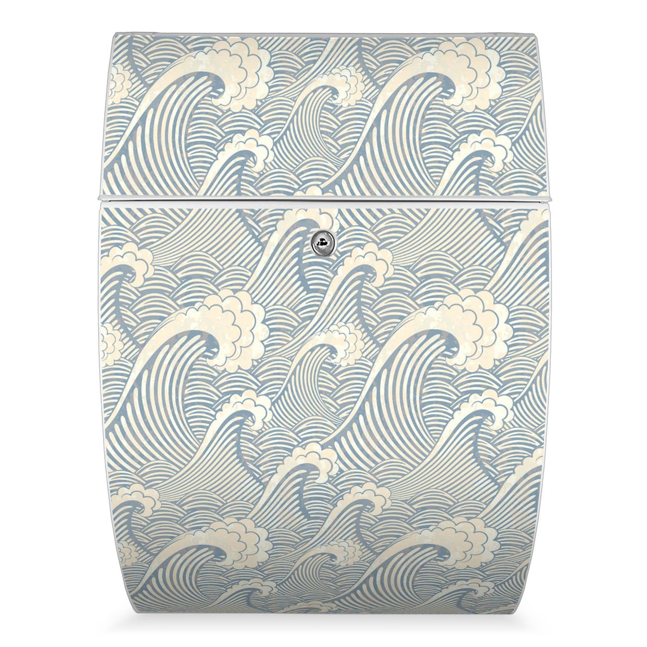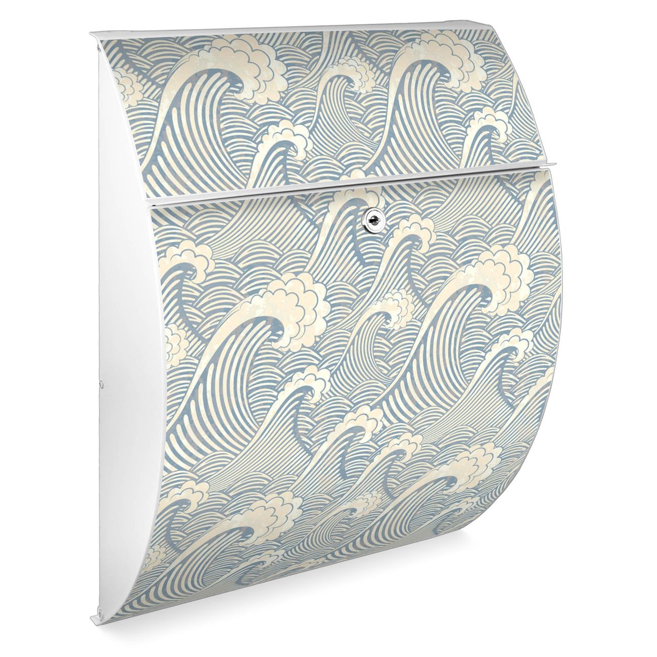 Der weiße Burg Wächter Design Briefkasten mit Motiv Blaue Wellen bietet Ihnen mit seinem Fassungsvermögen genügend Platz auch für große A4 Sendungen. Auf Wunsch können Sie bei uns auch den passenden Ständer kaufen und so aus dem Wandbriefkasten einen Standbriefkasten machen.