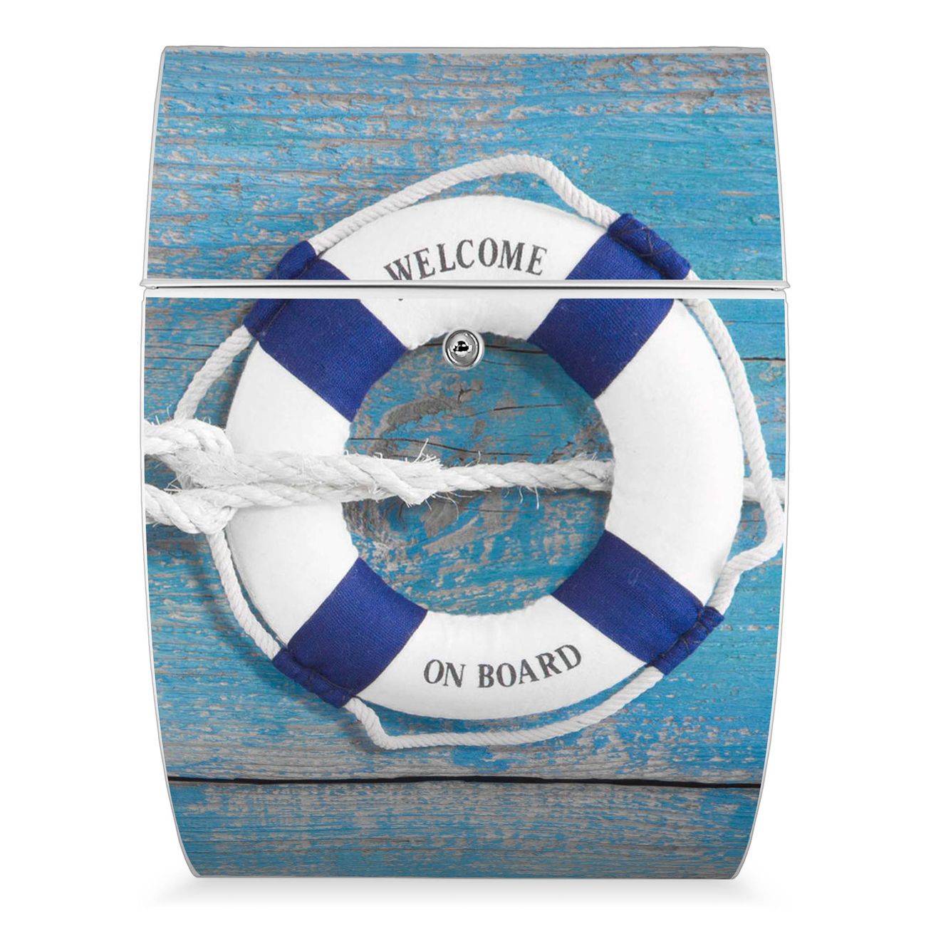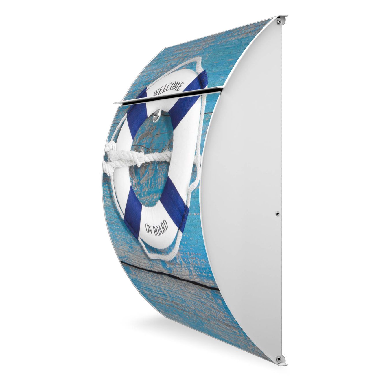 Der weiße Burg Wächter Design Briefkasten mit Motiv Blauer Rettungsring bietet Ihnen mit seinem Fassungsvermögen genügend Platz auch für große A4 Sendungen. Auf Wunsch können Sie bei uns auch den passenden Ständer kaufen und so aus dem Wandbriefkasten einen Standbriefkasten machen.