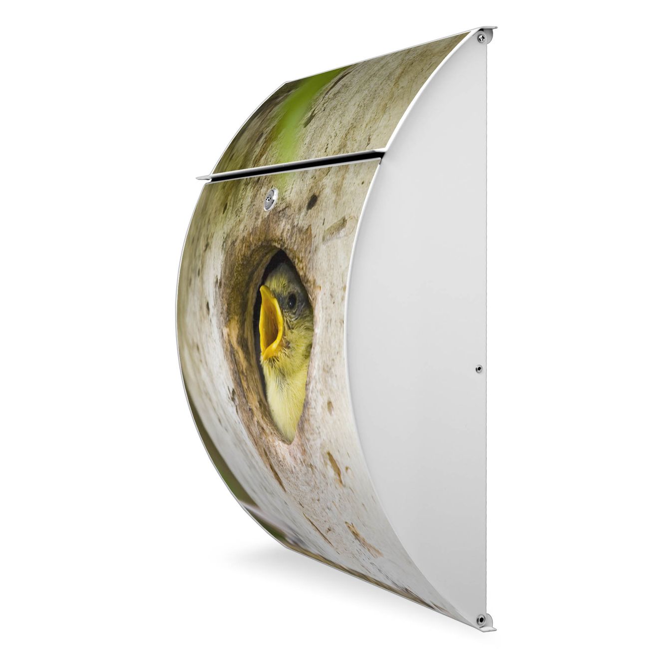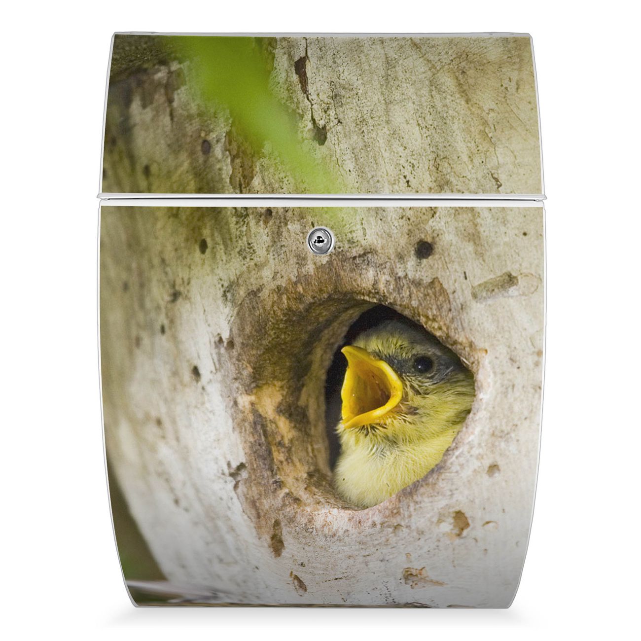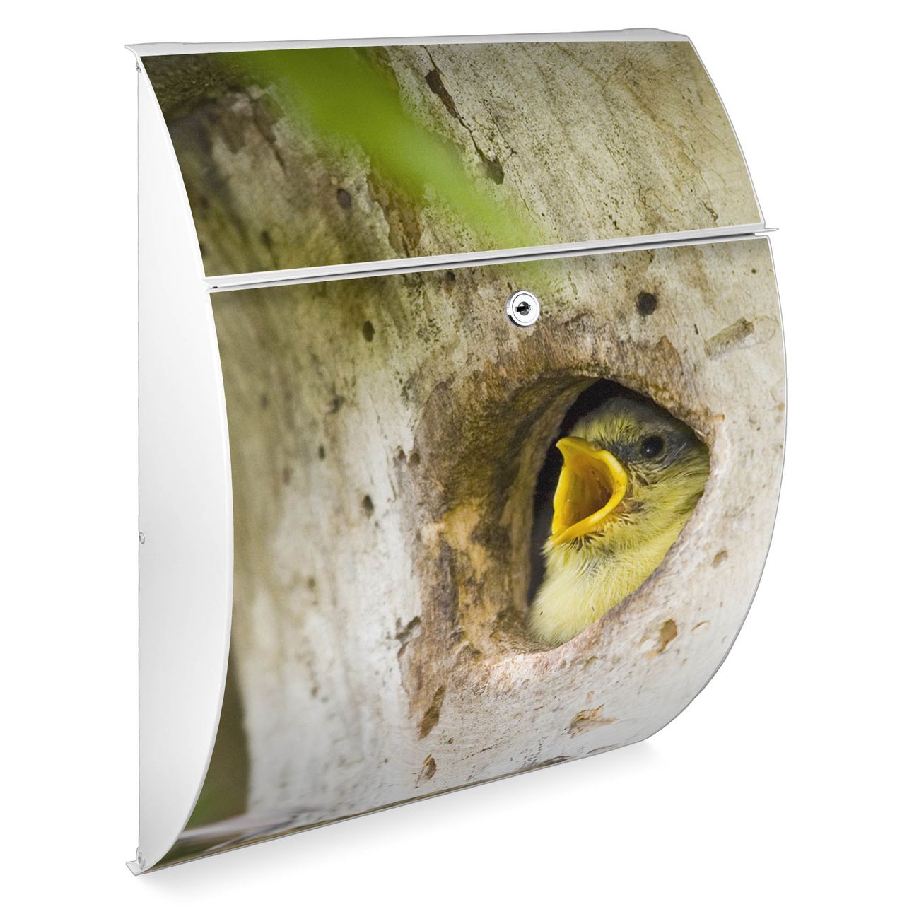 Der weiße Burg Wächter Design Briefkasten mit Motiv Blaumeise bietet Ihnen mit seinem Fassungsvermögen genügend Platz auch für große A4 Sendungen. Auf Wunsch können Sie bei uns auch den passenden Ständer kaufen und so aus dem Wandbriefkasten einen Standbriefkasten machen.