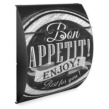 Der Burg Wächter Design Briefkasten mit Motiv Bon Appetit bietet Ihnen mit seinem Fassungsvermögen genügend Platz auch für große A4 Sendungen. Auf Wunsch können Sie bei uns den passenden Ständer kaufen und so aus dem Wandbriefkasten einen Standbriefkasten machen.