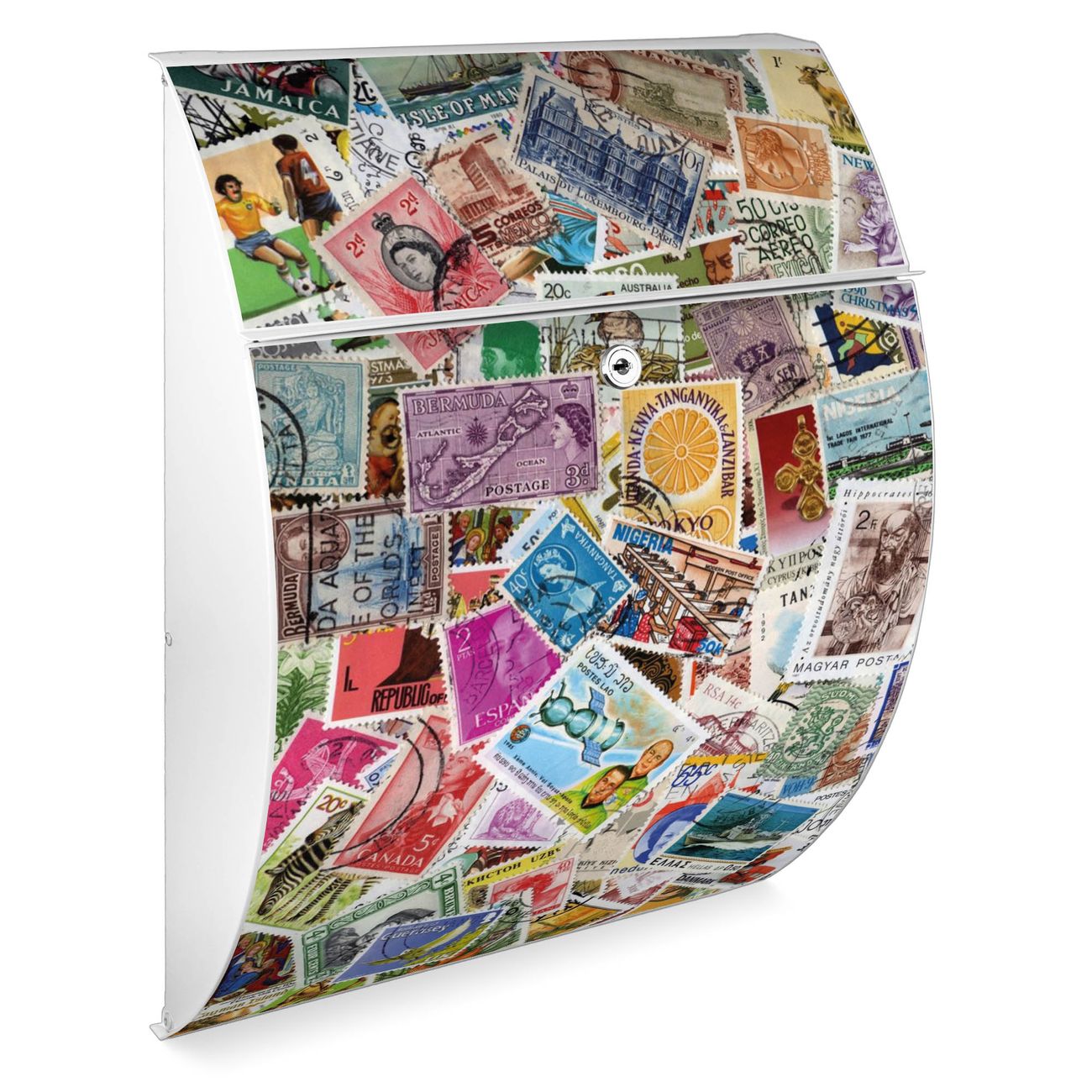 FUNKTION: DESIGN: Das Modell Riviera mit Motiv Briefmarken hat ein sehr ansprechendes und zeitloses Design. Heben Sie Sich von der tristen grauen Masse ab, ohne auf Funktionalität zu verzichten. Der integrierte Öffnungsstopp ermöglicht eine einfache Handhabung beim Entnehmen der Post. DETAILS: Der Postkasten besteht aus vollflächig verzinktem Stahl welcher in weiß lackiert wurde. Das Motiv besteht aus einer wetter- und UV-festen Folie, die mit einem Schutzlaminat überzogen ist, durch die Ihren Briefkasten zusätzlich vor Kratzern geschützt ist. Sie erhalten 2 Schlüssel sowie das passende Montagematerial. NUTZEN: Sie können den Briefkasten sowohl als Wandbriefkasten montieren oder einen passenden Ständer kaufen und als Standbriefkasten einbetonieren. Die Größe bietet genügend Platz für Sendungen aller Art, der Einwurf fasst auch größere A4 Sendungen. BANJADO: Ihr Briefkasten wird in Sachsen in einer kleinen Manufaktur von Hand veredelt. Die Motivfolie ist lösungsmittelfrei und schutzlaminiert, dies sorgt für einen langen Halt. Wir legen großen Wert auf die Verbindung von Funktionalität und Design. Sie erhalten Handarbeit aus Sachsen.