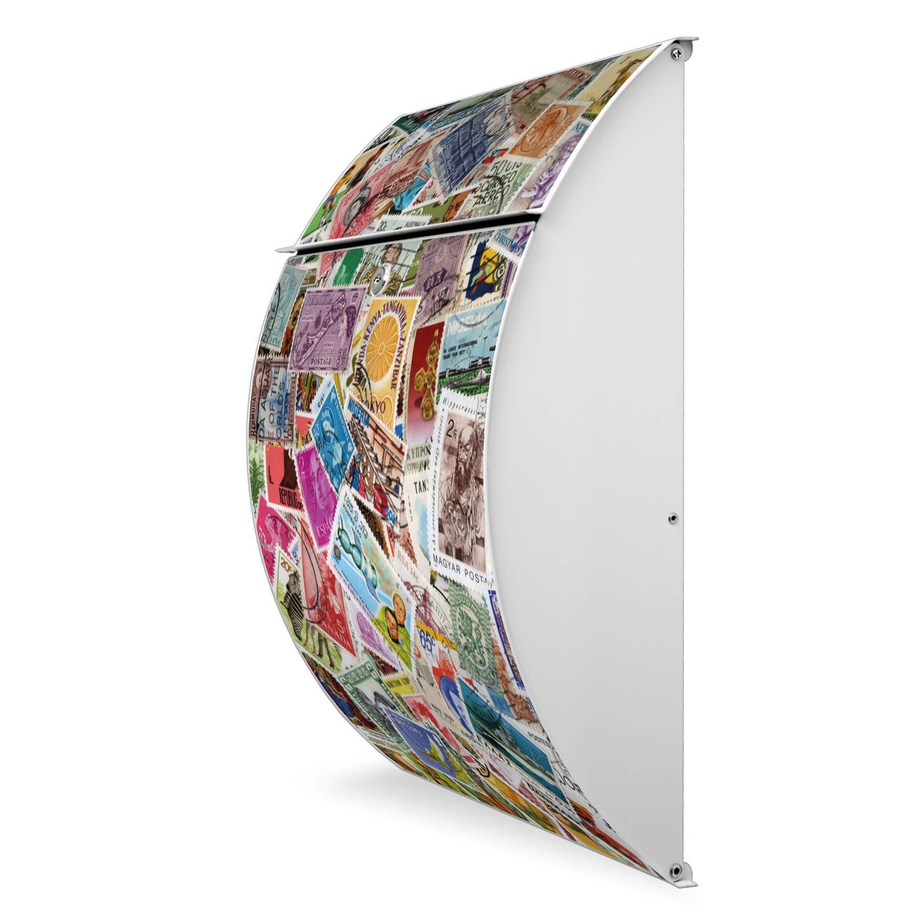 Der weiße Burg Wächter Design Briefkasten mit Motiv Briefmarken bietet Ihnen mit seinem Fassungsvermögen genügend Platz auch für große A4 Sendungen. Auf Wunsch können Sie bei uns auch den passenden Ständer kaufen und so aus dem Wandbriefkasten einen Standbriefkasten machen.