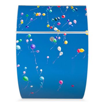 Der weiße Burg Wächter Design Briefkasten mit Motiv Bunte Luftballons bietet Ihnen mit seinem Fassungsvermögen genügend Platz auch für große A4 Sendungen. Auf Wunsch können Sie bei uns auch den passenden Ständer kaufen und so aus dem Wandbriefkasten einen Standbriefkasten machen.
