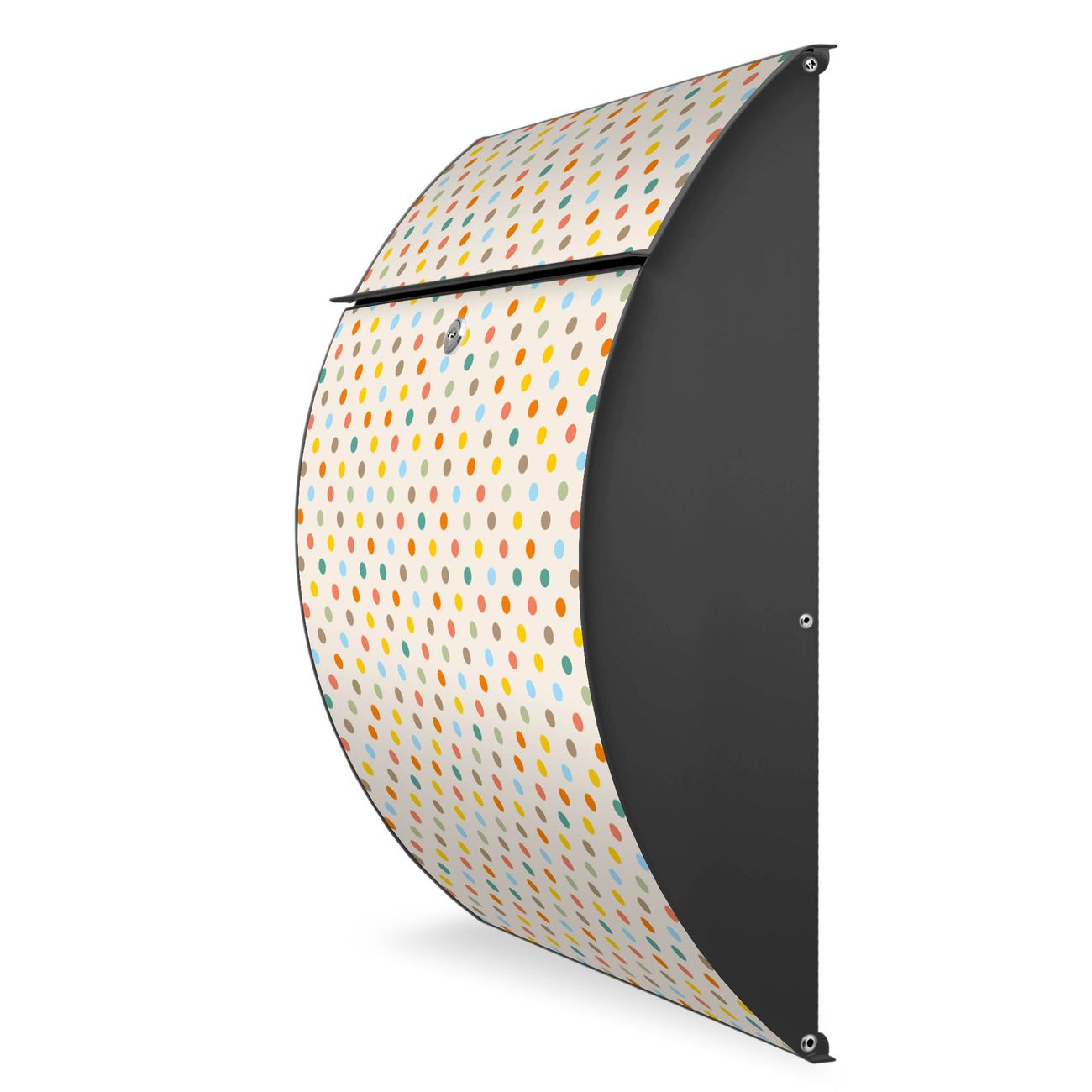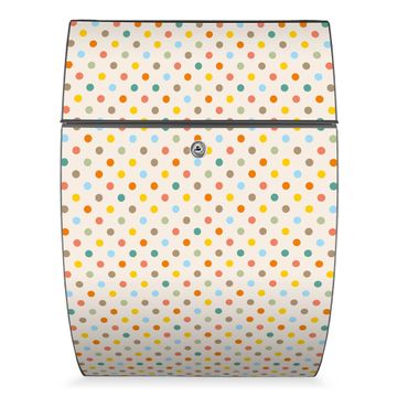Der Burg Wächter Design Briefkasten mit Motiv Bunte Punkte bietet Ihnen mit seinem Fassungsvermögen genügend Platz auch für große A4 Sendungen. Auf Wunsch können Sie bei uns den passenden Ständer kaufen und so aus dem Wandbriefkasten einen Standbriefkasten machen.