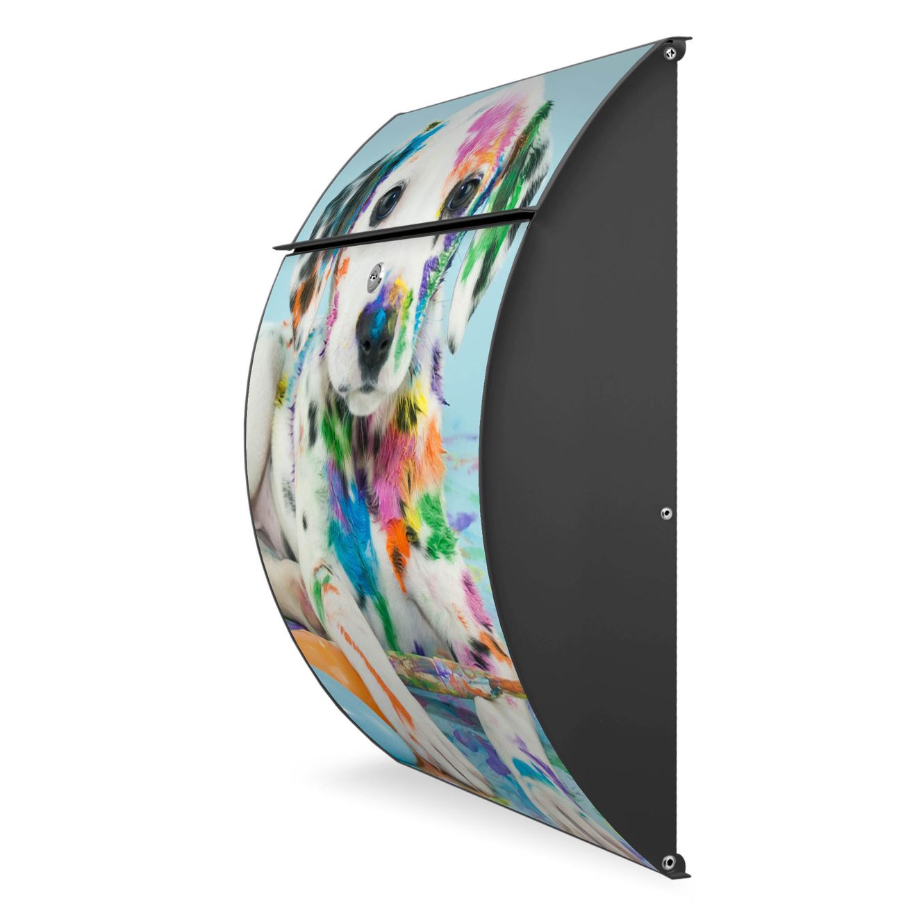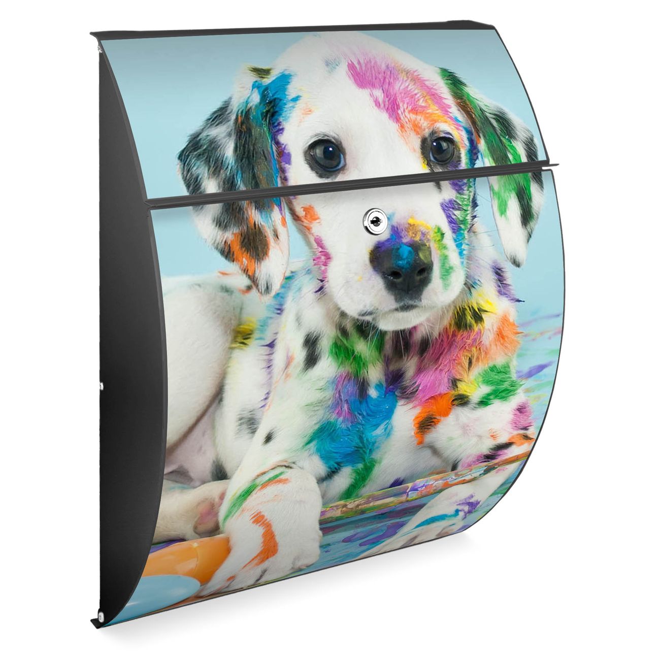 Der Burg Wächter Design Briefkasten mit Motiv Bunter Dalmatiner bietet Ihnen mit seinem Fassungsvermögen genügend Platz auch für große A4 Sendungen. Auf Wunsch können Sie bei uns den passenden Ständer kaufen und so aus dem Wandbriefkasten einen Standbriefkasten machen.