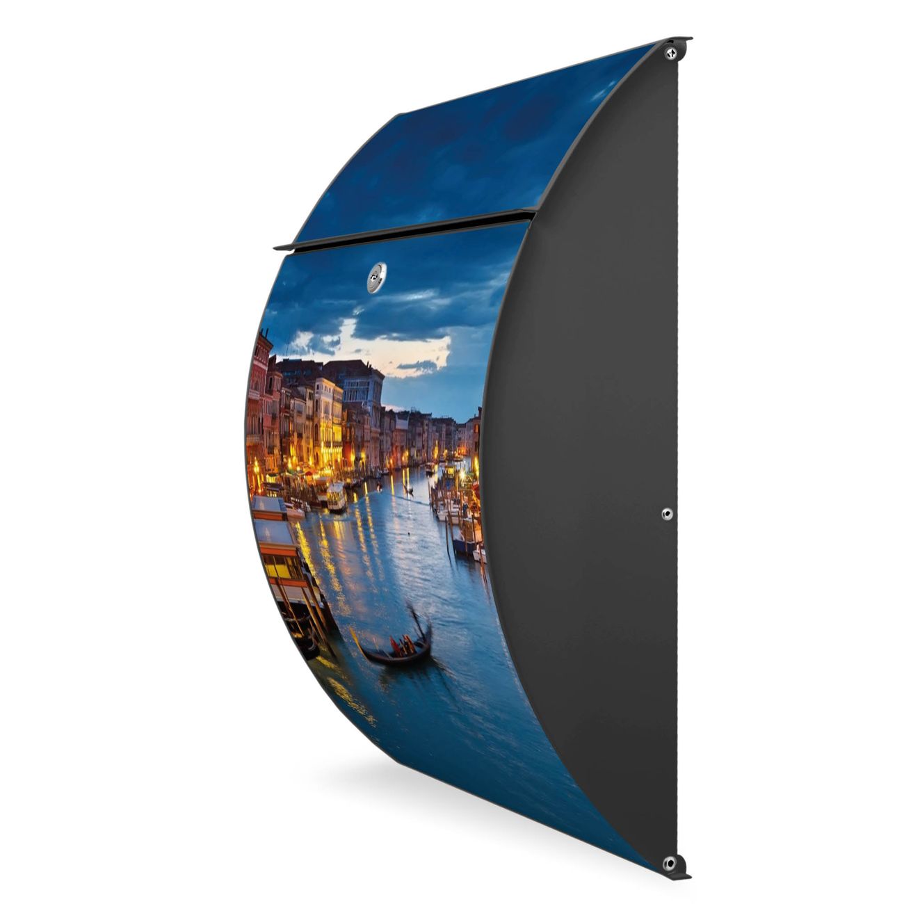 Der Burg Wächter Design Briefkasten mit Motiv Canale Grande Bei Nacht bietet Ihnen mit seinem Fassungsvermögen genügend Platz auch für große A4 Sendungen. Auf Wunsch können Sie bei uns den passenden Ständer kaufen und so aus dem Wandbriefkasten einen Standbriefkasten machen.