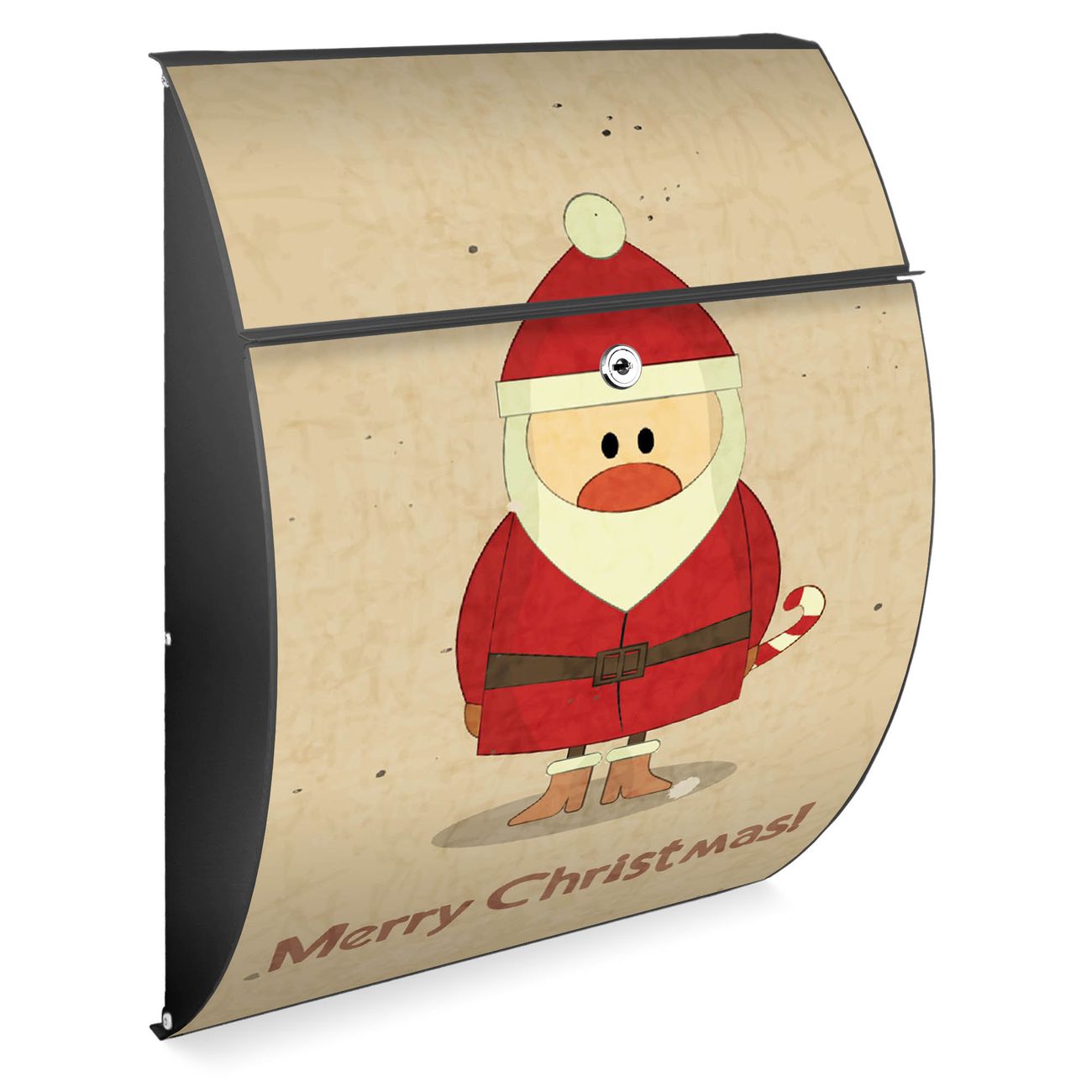 FUNKTION: DESIGN: Das Modell Riviera mit Motiv Cute Claus hat ein sehr ansprechendes und zeitloses Design. Heben Sie Sich von der tristen grauen Masse ab, ohne auf Funktionalität zu verzichten. Der integrierte Öffnungsstopp ermöglicht eine einfache Handhabung beim Entnehmen der Post. DETAILS: Der Postkasten besteht aus vollflächig verzinktem Stahl welcher in Anthrazit lackiert wurde. Das Motiv besteht aus einer wetter- und UV-festen Folie, die mit einem Schutzlaminat überzogen ist, durch die Ihren Briefkasten zusätzlich vor Kratzern geschützt ist. Sie erhalten 2 Schlüssel sowie das passende Montagematerial. NUTZEN: Sie können den Briefkasten sowohl als Wandbriefkasten montieren oder einen passenden Ständer kaufen und als Standbriefkasten einbetonieren. Die Größe bietet genügend Platz für Sendungen aller Art, der Einwurf fasst auch größere A4 Sendungen. BANJADO: Ihr Briefkasten wird in Sachsen in einer kleinen Manufaktur von Hand veredelt. Die Motivfolie ist lösungsmittelfrei und schutzlaminiert, dies sorgt für einen langen Halt. Wir legen großen Wert auf die Verbindung von Funktionalität und Design. Sie erhalten Handarbeit aus Sachsen.