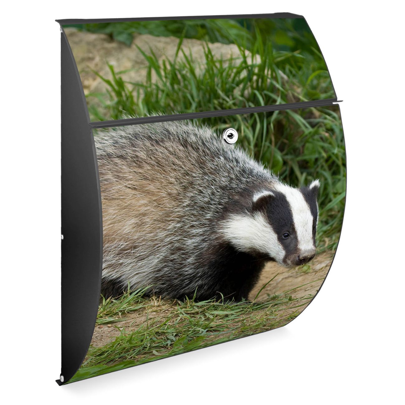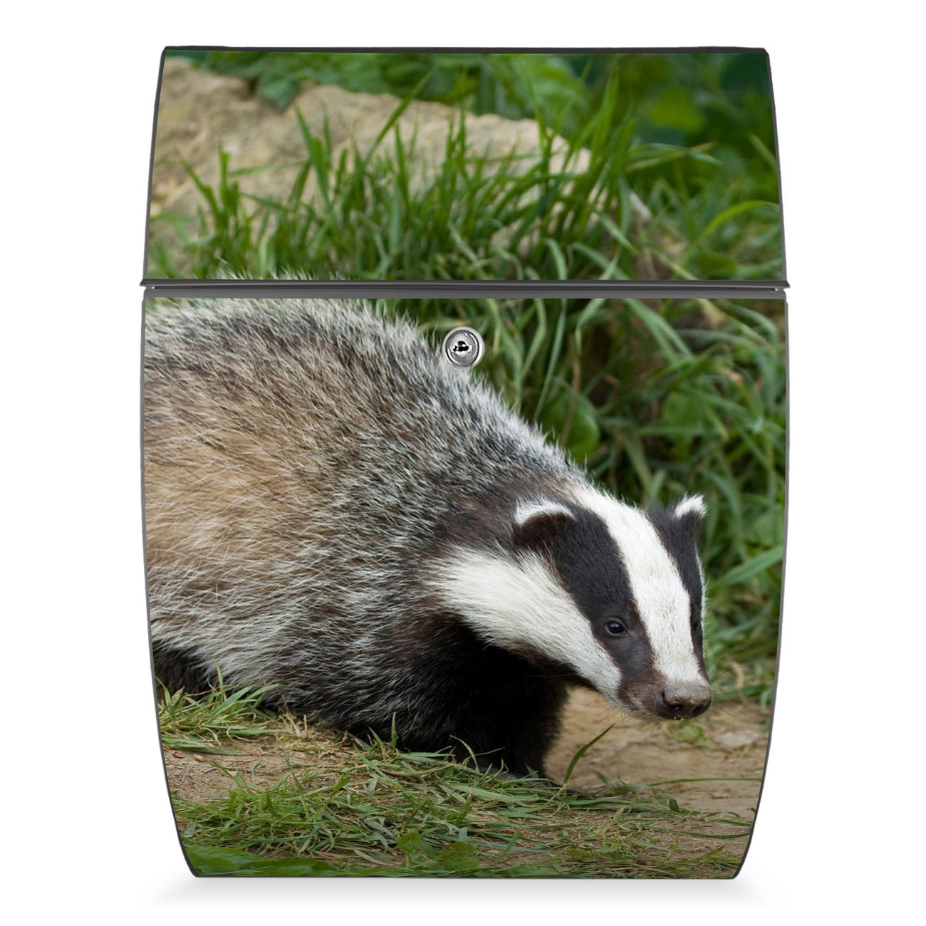 Der Burg Wächter Design Briefkasten mit Motiv Dachs bietet Ihnen mit seinem Fassungsvermögen genügend Platz auch für große A4 Sendungen. Auf Wunsch können Sie bei uns den passenden Ständer kaufen und so aus dem Wandbriefkasten einen Standbriefkasten machen.
