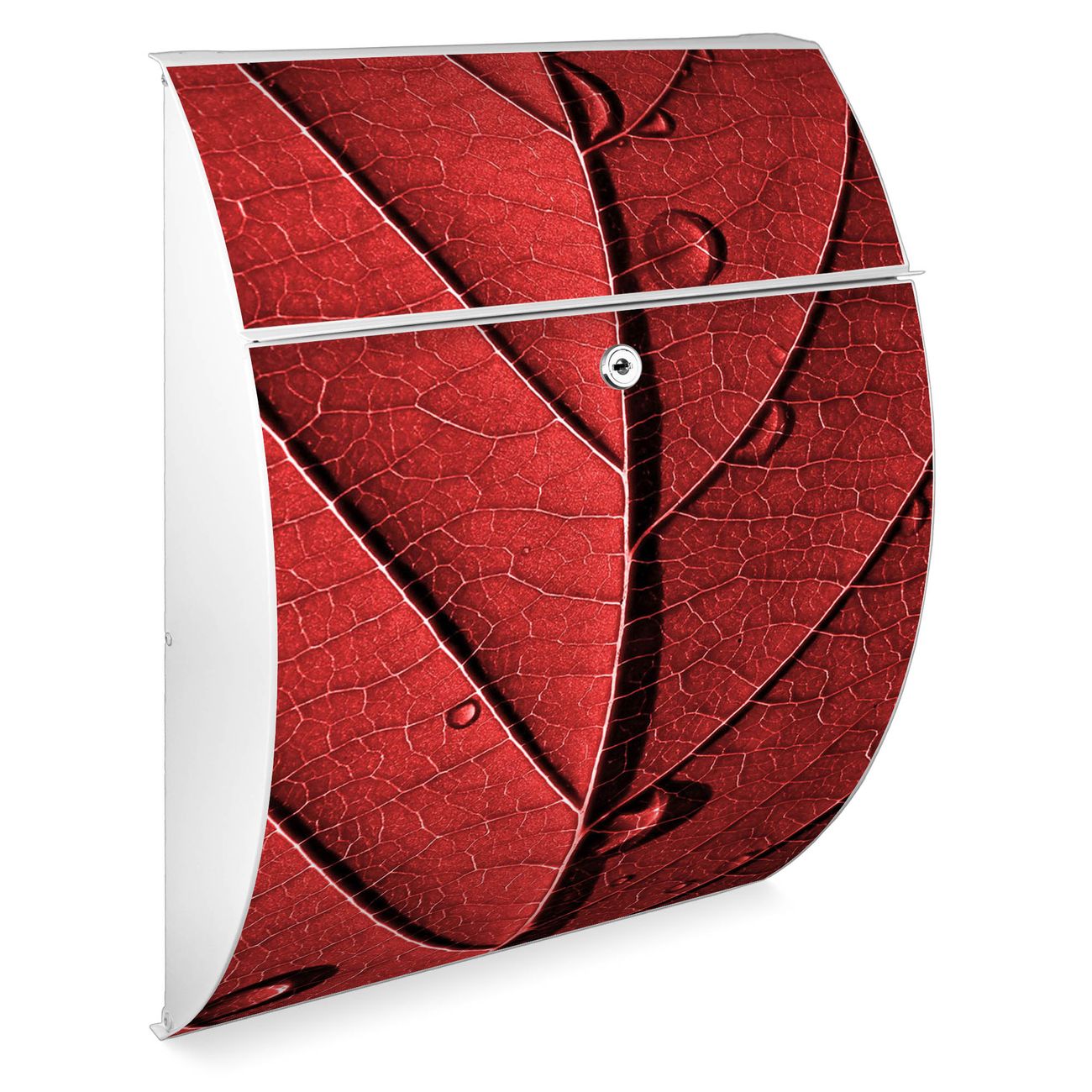 Der weiße Burg Wächter Design Briefkasten mit Motiv Detail Blatt bietet Ihnen mit seinem Fassungsvermögen genügend Platz auch für große A4 Sendungen. Auf Wunsch können Sie bei uns auch den passenden Ständer kaufen und so aus dem Wandbriefkasten einen Standbriefkasten machen.