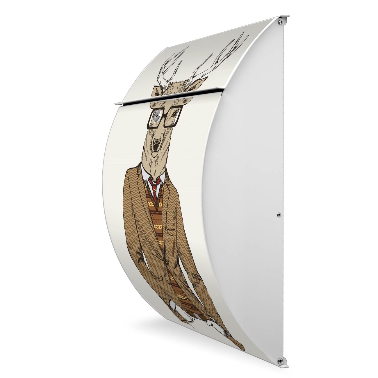 Der weiße Burg Wächter Design Briefkasten mit Motiv Doktor Hirsch bietet Ihnen mit seinem Fassungsvermögen genügend Platz auch für große A4 Sendungen. Auf Wunsch können Sie bei uns auch den passenden Ständer kaufen und so aus dem Wandbriefkasten einen Standbriefkasten machen.