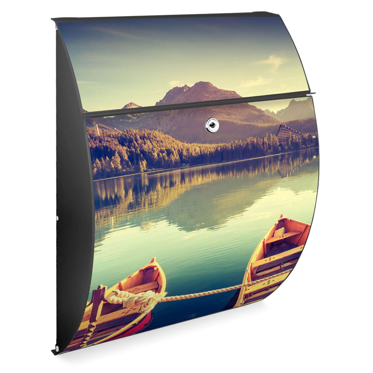FUNKTION: DESIGN: Das Modell Riviera mit Motiv Drei Boote Am Steg hat ein sehr ansprechendes und zeitloses Design. Heben Sie Sich von der tristen grauen Masse ab, ohne auf Funktionalität zu verzichten. Der integrierte Öffnungsstopp ermöglicht eine einfache Handhabung beim Entnehmen der Post. DETAILS: Der Postkasten besteht aus vollflächig verzinktem Stahl welcher in Anthrazit lackiert wurde. Das Motiv besteht aus einer wetter- und UV-festen Folie, die mit einem Schutzlaminat überzogen ist, durch die Ihren Briefkasten zusätzlich vor Kratzern geschützt ist. Sie erhalten 2 Schlüssel sowie das passende Montagematerial. NUTZEN: Sie können den Briefkasten sowohl als Wandbriefkasten montieren oder einen passenden Ständer kaufen und als Standbriefkasten einbetonieren. Die Größe bietet genügend Platz für Sendungen aller Art, der Einwurf fasst auch größere A4 Sendungen. BANJADO: Ihr Briefkasten wird in Sachsen in einer kleinen Manufaktur von Hand veredelt. Die Motivfolie ist lösungsmittelfrei und schutzlaminiert, dies sorgt für einen langen Halt. Wir legen großen Wert auf die Verbindung von Funktionalität und Design. Sie erhalten Handarbeit aus Sachsen.