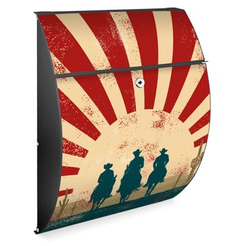 Der Burg Wächter Design Briefkasten mit Motiv Drei Cowboys bietet Ihnen mit seinem Fassungsvermögen genügend Platz auch für große A4 Sendungen. Auf Wunsch können Sie bei uns den passenden Ständer kaufen und so aus dem Wandbriefkasten einen Standbriefkasten machen.