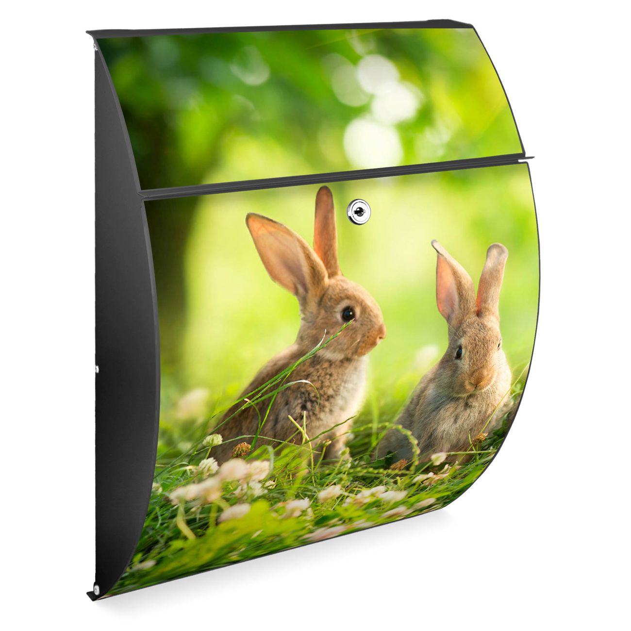 FUNKTION: DESIGN: Das Modell Riviera mit Motiv Drei Hasen hat ein sehr ansprechendes und zeitloses Design. Heben Sie Sich von der tristen grauen Masse ab, ohne auf Funktionalität zu verzichten. Der integrierte Öffnungsstopp ermöglicht eine einfache Handhabung beim Entnehmen der Post. DETAILS: Der Postkasten besteht aus vollflächig verzinktem Stahl welcher in Anthrazit lackiert wurde. Das Motiv besteht aus einer wetter- und UV-festen Folie, die mit einem Schutzlaminat überzogen ist, durch die Ihren Briefkasten zusätzlich vor Kratzern geschützt ist. Sie erhalten 2 Schlüssel sowie das passende Montagematerial. NUTZEN: Sie können den Briefkasten sowohl als Wandbriefkasten montieren oder einen passenden Ständer kaufen und als Standbriefkasten einbetonieren. Die Größe bietet genügend Platz für Sendungen aller Art, der Einwurf fasst auch größere A4 Sendungen. BANJADO: Ihr Briefkasten wird in Sachsen in einer kleinen Manufaktur von Hand veredelt. Die Motivfolie ist lösungsmittelfrei und schutzlaminiert, dies sorgt für einen langen Halt. Wir legen großen Wert auf die Verbindung von Funktionalität und Design. Sie erhalten Handarbeit aus Sachsen.