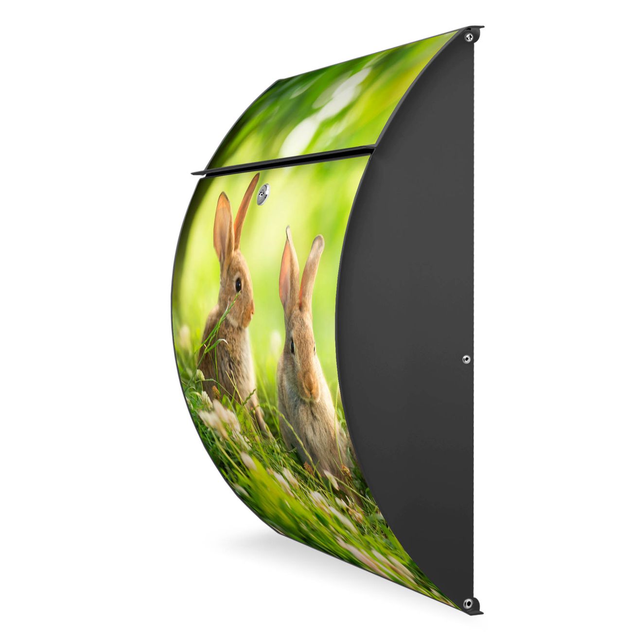 Der Burg Wächter Design Briefkasten mit Motiv Drei Hasen bietet Ihnen mit seinem Fassungsvermögen genügend Platz auch für große A4 Sendungen. Auf Wunsch können Sie bei uns den passenden Ständer kaufen und so aus dem Wandbriefkasten einen Standbriefkasten machen.