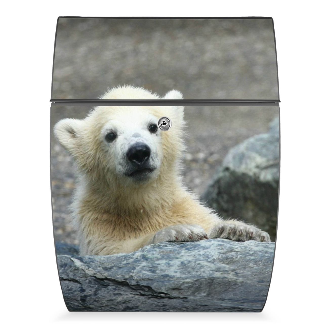 Der Burg Wächter Design Briefkasten mit Motiv Eisbär Baby bietet Ihnen mit seinem Fassungsvermögen genügend Platz auch für große A4 Sendungen. Auf Wunsch können Sie bei uns den passenden Ständer kaufen und so aus dem Wandbriefkasten einen Standbriefkasten machen.