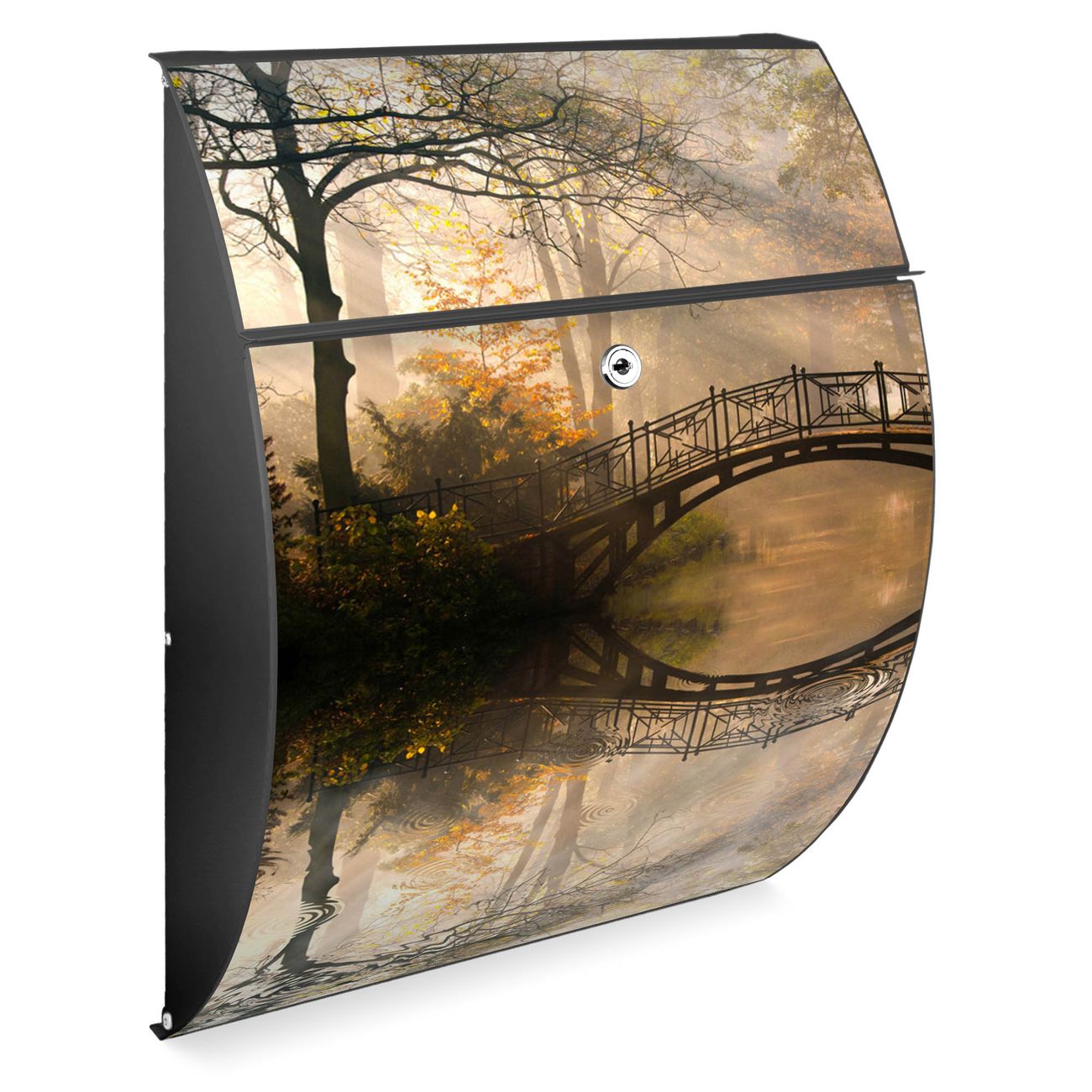 FUNKTION: DESIGN: Das Modell Riviera mit Motiv Englischer Garten hat ein sehr ansprechendes und zeitloses Design. Heben Sie Sich von der tristen grauen Masse ab, ohne auf Funktionalität zu verzichten. Der integrierte Öffnungsstopp ermöglicht eine einfache Handhabung beim Entnehmen der Post. DETAILS: Der Postkasten besteht aus vollflächig verzinktem Stahl welcher in Anthrazit lackiert wurde. Das Motiv besteht aus einer wetter- und UV-festen Folie, die mit einem Schutzlaminat überzogen ist, durch die Ihren Briefkasten zusätzlich vor Kratzern geschützt ist. Sie erhalten 2 Schlüssel sowie das passende Montagematerial. NUTZEN: Sie können den Briefkasten sowohl als Wandbriefkasten montieren oder einen passenden Ständer kaufen und als Standbriefkasten einbetonieren. Die Größe bietet genügend Platz für Sendungen aller Art, der Einwurf fasst auch größere A4 Sendungen. BANJADO: Ihr Briefkasten wird in Sachsen in einer kleinen Manufaktur von Hand veredelt. Die Motivfolie ist lösungsmittelfrei und schutzlaminiert, dies sorgt für einen langen Halt. Wir legen großen Wert auf die Verbindung von Funktionalität und Design. Sie erhalten Handarbeit aus Sachsen.