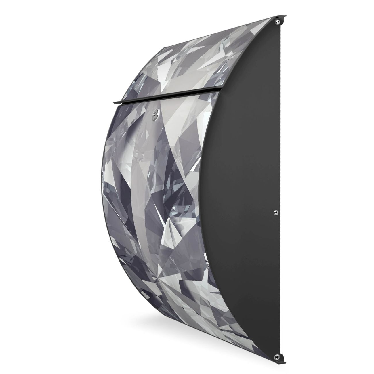 FUNKTION: DESIGN: Das Modell Riviera mit Motiv Facetten Monochrome hat ein sehr ansprechendes und zeitloses Design. Heben Sie Sich von der tristen grauen Masse ab, ohne auf Funktionalität zu verzichten. Der integrierte Öffnungsstopp ermöglicht eine einfache Handhabung beim Entnehmen der Post. DETAILS: Der Postkasten besteht aus vollflächig verzinktem Stahl welcher in Anthrazit lackiert wurde. Das Motiv besteht aus einer wetter- und UV-festen Folie, die mit einem Schutzlaminat überzogen ist, durch die Ihren Briefkasten zusätzlich vor Kratzern geschützt ist. Sie erhalten 2 Schlüssel sowie das passende Montagematerial. NUTZEN: Sie können den Briefkasten sowohl als Wandbriefkasten montieren oder einen passenden Ständer kaufen und als Standbriefkasten einbetonieren. Die Größe bietet genügend Platz für Sendungen aller Art, der Einwurf fasst auch größere A4 Sendungen. BANJADO: Ihr Briefkasten wird in Sachsen in einer kleinen Manufaktur von Hand veredelt. Die Motivfolie ist lösungsmittelfrei und schutzlaminiert, dies sorgt für einen langen Halt. Wir legen großen Wert auf die Verbindung von Funktionalität und Design. Sie erhalten Handarbeit aus Sachsen.
