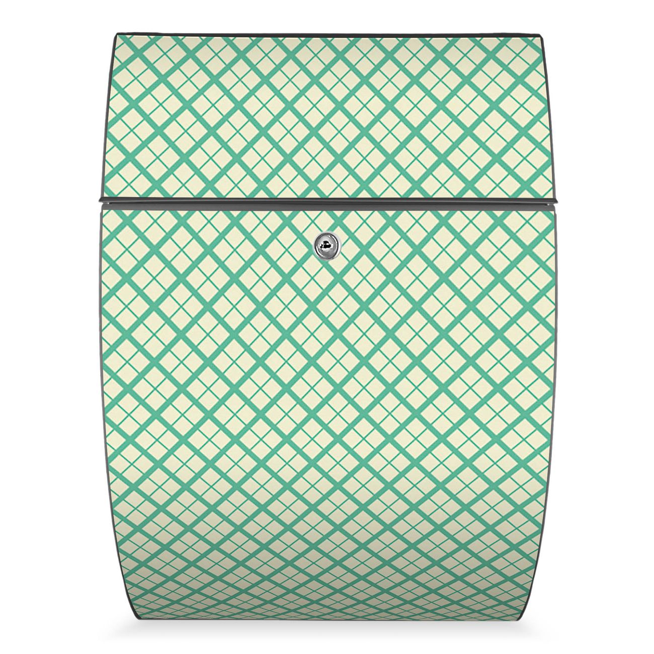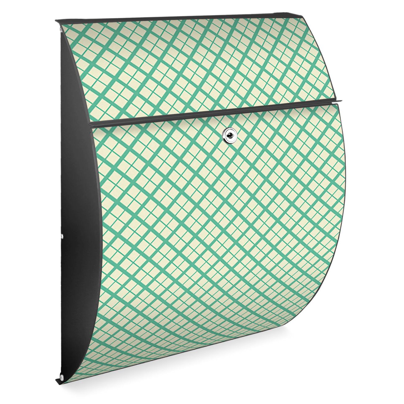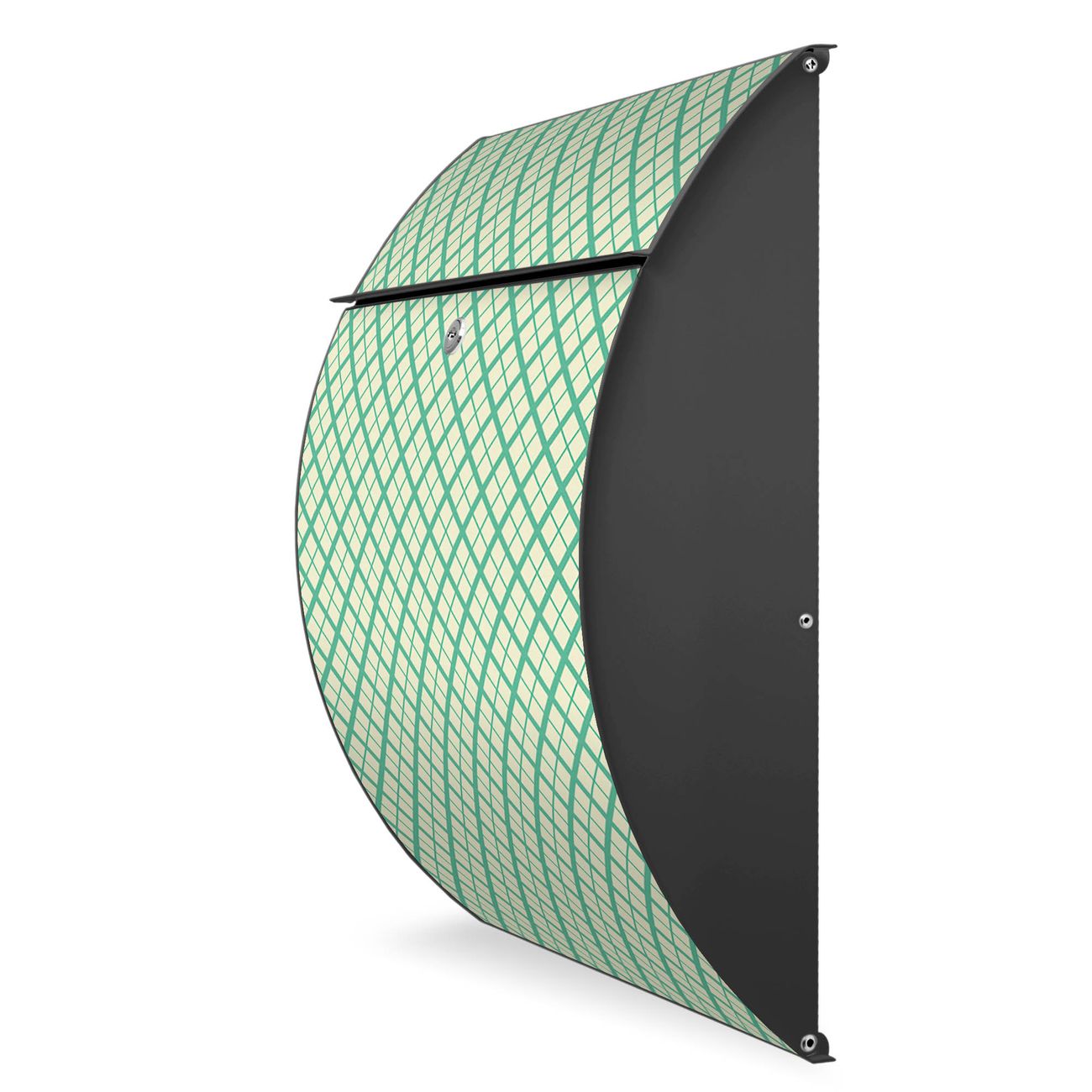 FUNKTION: DESIGN: Das Modell Riviera mit Motiv Feines Rautenmuster hat ein sehr ansprechendes und zeitloses Design. Heben Sie Sich von der tristen grauen Masse ab, ohne auf Funktionalität zu verzichten. Der integrierte Öffnungsstopp ermöglicht eine einfache Handhabung beim Entnehmen der Post. DETAILS: Der Postkasten besteht aus vollflächig verzinktem Stahl welcher in Anthrazit lackiert wurde. Das Motiv besteht aus einer wetter- und UV-festen Folie, die mit einem Schutzlaminat überzogen ist, durch die Ihren Briefkasten zusätzlich vor Kratzern geschützt ist. Sie erhalten 2 Schlüssel sowie das passende Montagematerial. NUTZEN: Sie können den Briefkasten sowohl als Wandbriefkasten montieren oder einen passenden Ständer kaufen und als Standbriefkasten einbetonieren. Die Größe bietet genügend Platz für Sendungen aller Art, der Einwurf fasst auch größere A4 Sendungen. BANJADO: Ihr Briefkasten wird in Sachsen in einer kleinen Manufaktur von Hand veredelt. Die Motivfolie ist lösungsmittelfrei und schutzlaminiert, dies sorgt für einen langen Halt. Wir legen großen Wert auf die Verbindung von Funktionalität und Design. Sie erhalten Handarbeit aus Sachsen.
