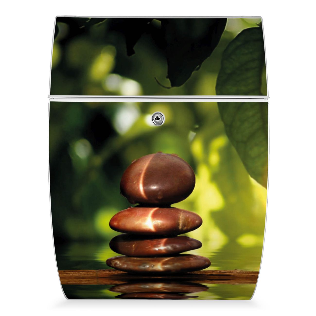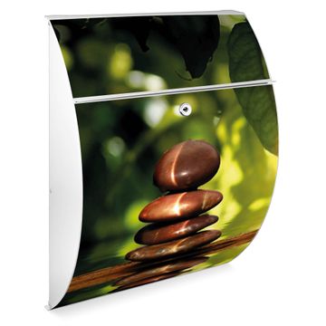 FUNKTION: DESIGN: Das Modell Riviera mit Motiv Feng Shui hat ein sehr ansprechendes und zeitloses Design. Heben Sie Sich von der tristen grauen Masse ab, ohne auf Funktionalität zu verzichten. Der integrierte Öffnungsstopp ermöglicht eine einfache Handhabung beim Entnehmen der Post. DETAILS: Der Postkasten besteht aus vollflächig verzinktem Stahl welcher in weiß lackiert wurde. Das Motiv besteht aus einer wetter- und UV-festen Folie, die mit einem Schutzlaminat überzogen ist, durch die Ihren Briefkasten zusätzlich vor Kratzern geschützt ist. Sie erhalten 2 Schlüssel sowie das passende Montagematerial. NUTZEN: Sie können den Briefkasten sowohl als Wandbriefkasten montieren oder einen passenden Ständer kaufen und als Standbriefkasten einbetonieren. Die Größe bietet genügend Platz für Sendungen aller Art, der Einwurf fasst auch größere A4 Sendungen. BANJADO: Ihr Briefkasten wird in Sachsen in einer kleinen Manufaktur von Hand veredelt. Die Motivfolie ist lösungsmittelfrei und schutzlaminiert, dies sorgt für einen langen Halt. Wir legen großen Wert auf die Verbindung von Funktionalität und Design. Sie erhalten Handarbeit aus Sachsen.