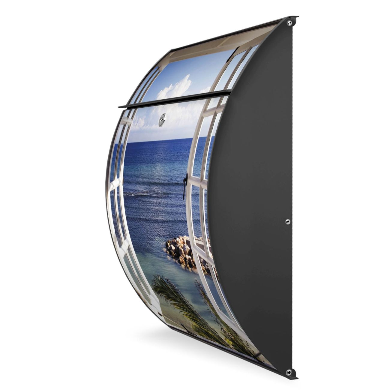 FUNKTION: DESIGN: Das Modell Riviera mit Motiv Fensterpanorama hat ein sehr ansprechendes und zeitloses Design. Heben Sie Sich von der tristen grauen Masse ab, ohne auf Funktionalität zu verzichten. Der integrierte Öffnungsstopp ermöglicht eine einfache Handhabung beim Entnehmen der Post. DETAILS: Der Postkasten besteht aus vollflächig verzinktem Stahl welcher in Anthrazit lackiert wurde. Das Motiv besteht aus einer wetter- und UV-festen Folie, die mit einem Schutzlaminat überzogen ist, durch die Ihren Briefkasten zusätzlich vor Kratzern geschützt ist. Sie erhalten 2 Schlüssel sowie das passende Montagematerial. NUTZEN: Sie können den Briefkasten sowohl als Wandbriefkasten montieren oder einen passenden Ständer kaufen und als Standbriefkasten einbetonieren. Die Größe bietet genügend Platz für Sendungen aller Art, der Einwurf fasst auch größere A4 Sendungen. BANJADO: Ihr Briefkasten wird in Sachsen in einer kleinen Manufaktur von Hand veredelt. Die Motivfolie ist lösungsmittelfrei und schutzlaminiert, dies sorgt für einen langen Halt. Wir legen großen Wert auf die Verbindung von Funktionalität und Design. Sie erhalten Handarbeit aus Sachsen.