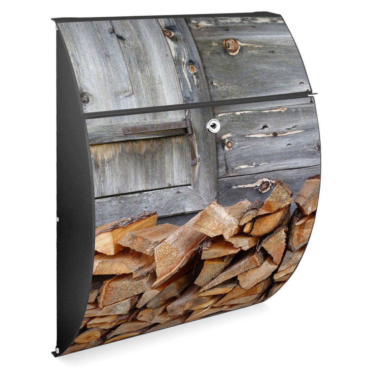 FUNKTION: DESIGN: Das Modell Riviera mit Motiv Feuerholz hat ein sehr ansprechendes und zeitloses Design. Heben Sie Sich von der tristen grauen Masse ab, ohne auf Funktionalität zu verzichten. Der integrierte Öffnungsstopp ermöglicht eine einfache Handhabung beim Entnehmen der Post. DETAILS: Der Postkasten besteht aus vollflächig verzinktem Stahl welcher in Anthrazit lackiert wurde. Das Motiv besteht aus einer wetter- und UV-festen Folie, die mit einem Schutzlaminat überzogen ist, durch die Ihren Briefkasten zusätzlich vor Kratzern geschützt ist. Sie erhalten 2 Schlüssel sowie das passende Montagematerial. NUTZEN: Sie können den Briefkasten sowohl als Wandbriefkasten montieren oder einen passenden Ständer kaufen und als Standbriefkasten einbetonieren. Die Größe bietet genügend Platz für Sendungen aller Art, der Einwurf fasst auch größere A4 Sendungen. BANJADO: Ihr Briefkasten wird in Sachsen in einer kleinen Manufaktur von Hand veredelt. Die Motivfolie ist lösungsmittelfrei und schutzlaminiert, dies sorgt für einen langen Halt. Wir legen großen Wert auf die Verbindung von Funktionalität und Design. Sie erhalten Handarbeit aus Sachsen.