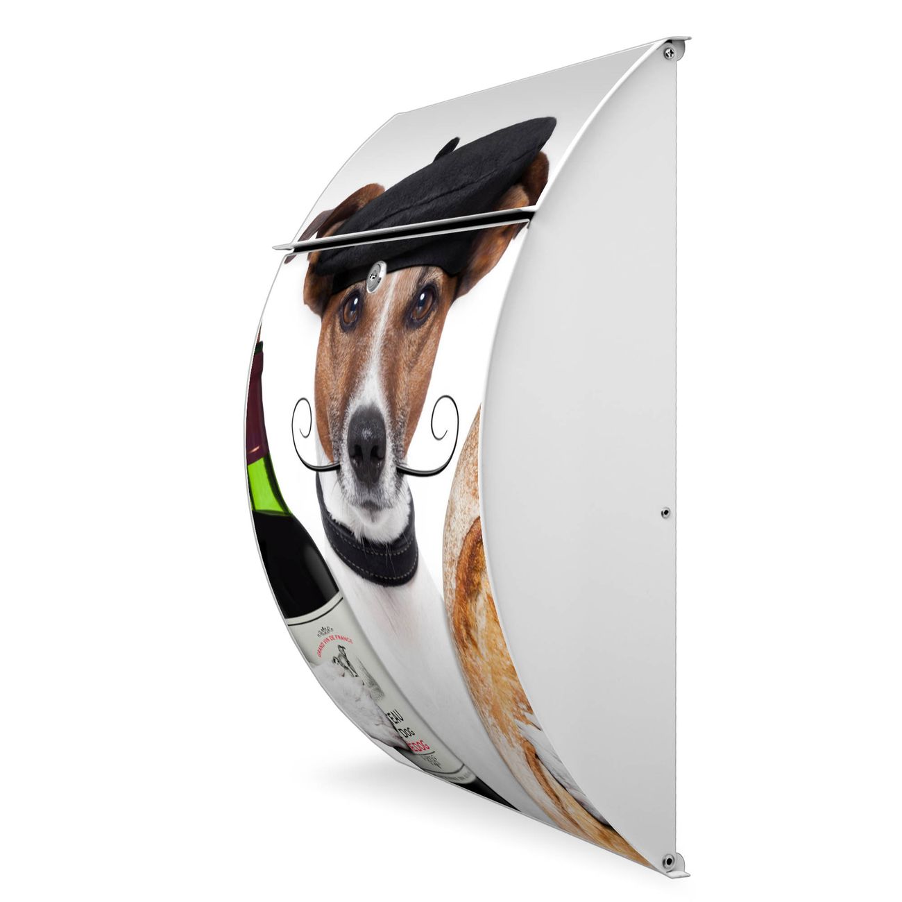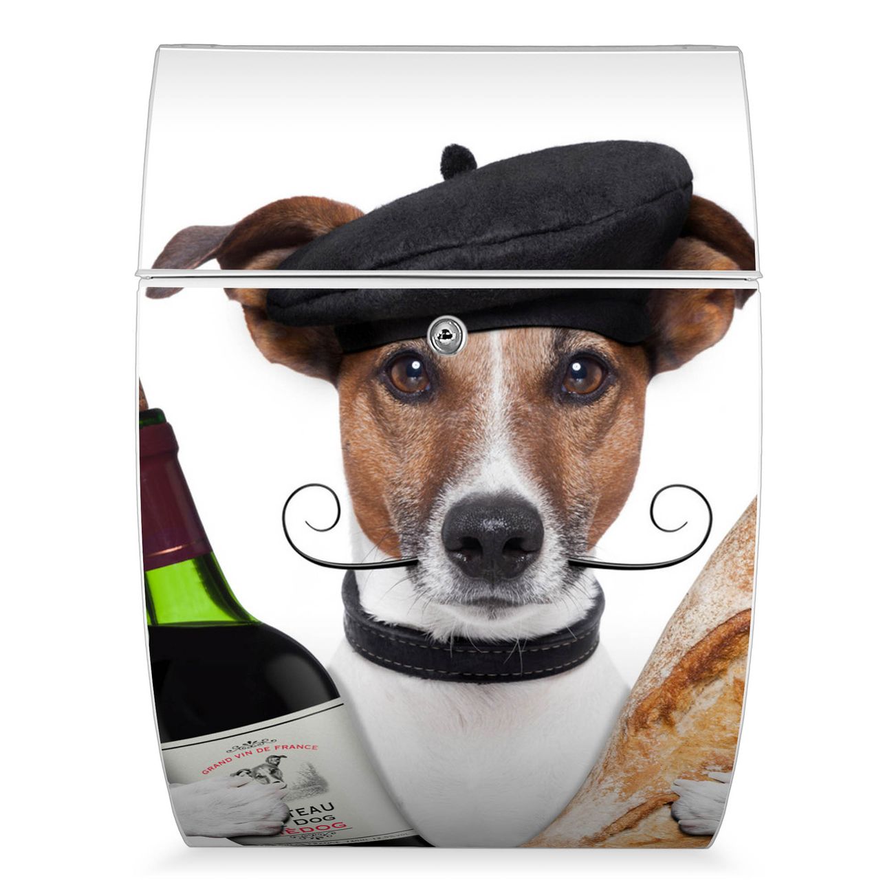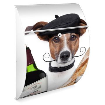 Der weiße Burg Wächter Design Briefkasten mit Motiv Franzose Jack Russel bietet Ihnen mit seinem Fassungsvermögen genügend Platz auch für große A4 Sendungen. Auf Wunsch können Sie bei uns auch den passenden Ständer kaufen und so aus dem Wandbriefkasten einen Standbriefkasten machen.