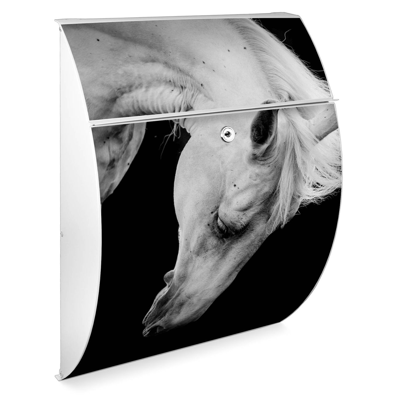 Der weiße Burg Wächter Design Briefkasten mit Motiv Frederik bietet Ihnen mit seinem Fassungsvermögen genügend Platz auch für große A4 Sendungen. Auf Wunsch können Sie bei uns auch den passenden Ständer kaufen und so aus dem Wandbriefkasten einen Standbriefkasten machen.