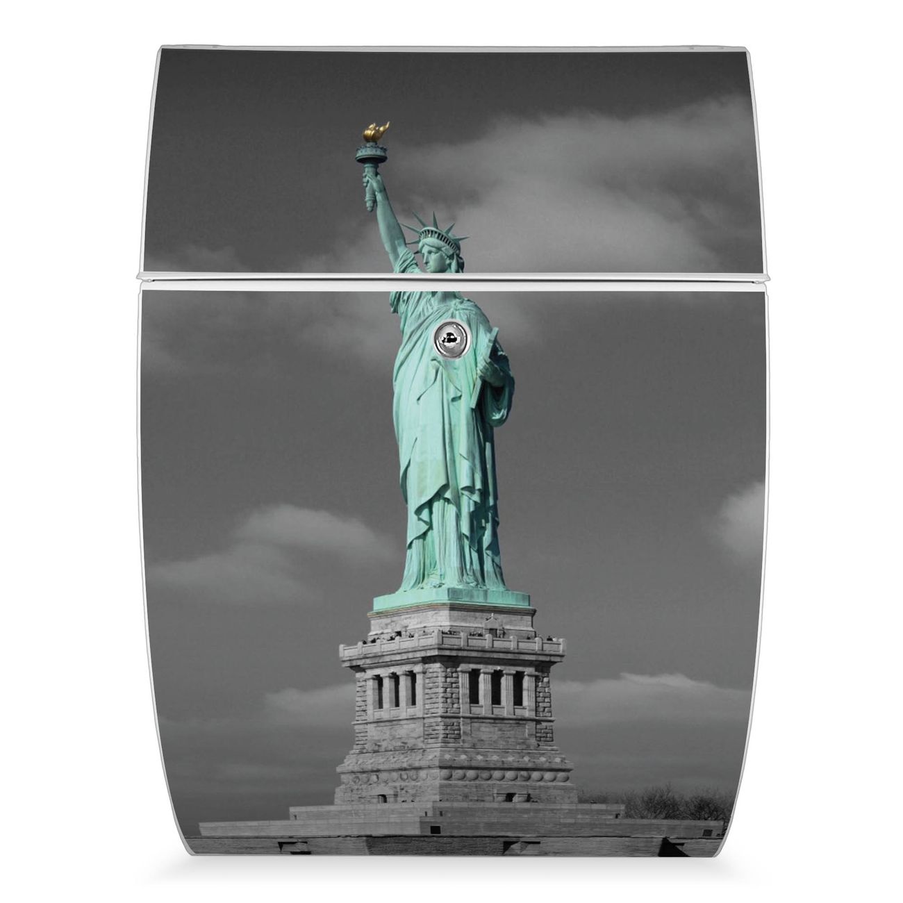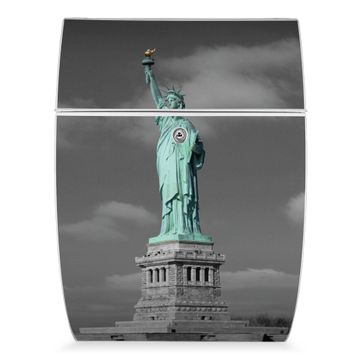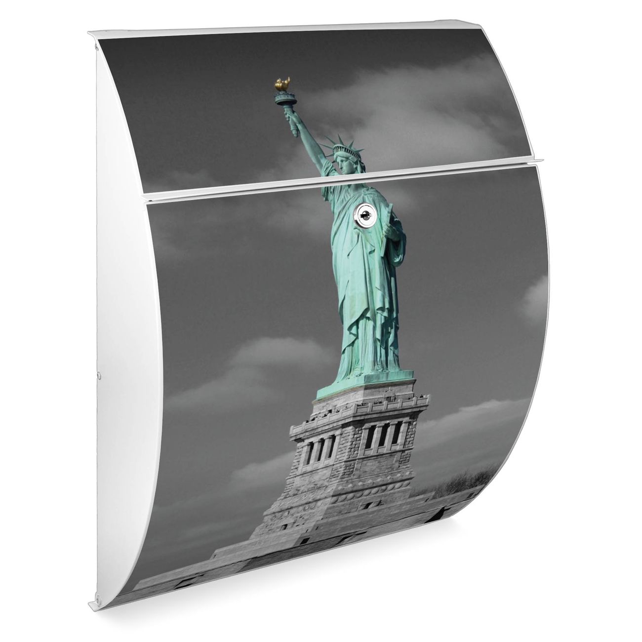 Der weiße Burg Wächter Design Briefkasten mit Motiv Freiheitsstatue bietet Ihnen mit seinem Fassungsvermögen genügend Platz auch für große A4 Sendungen. Auf Wunsch können Sie bei uns auch den passenden Ständer kaufen und so aus dem Wandbriefkasten einen Standbriefkasten machen.