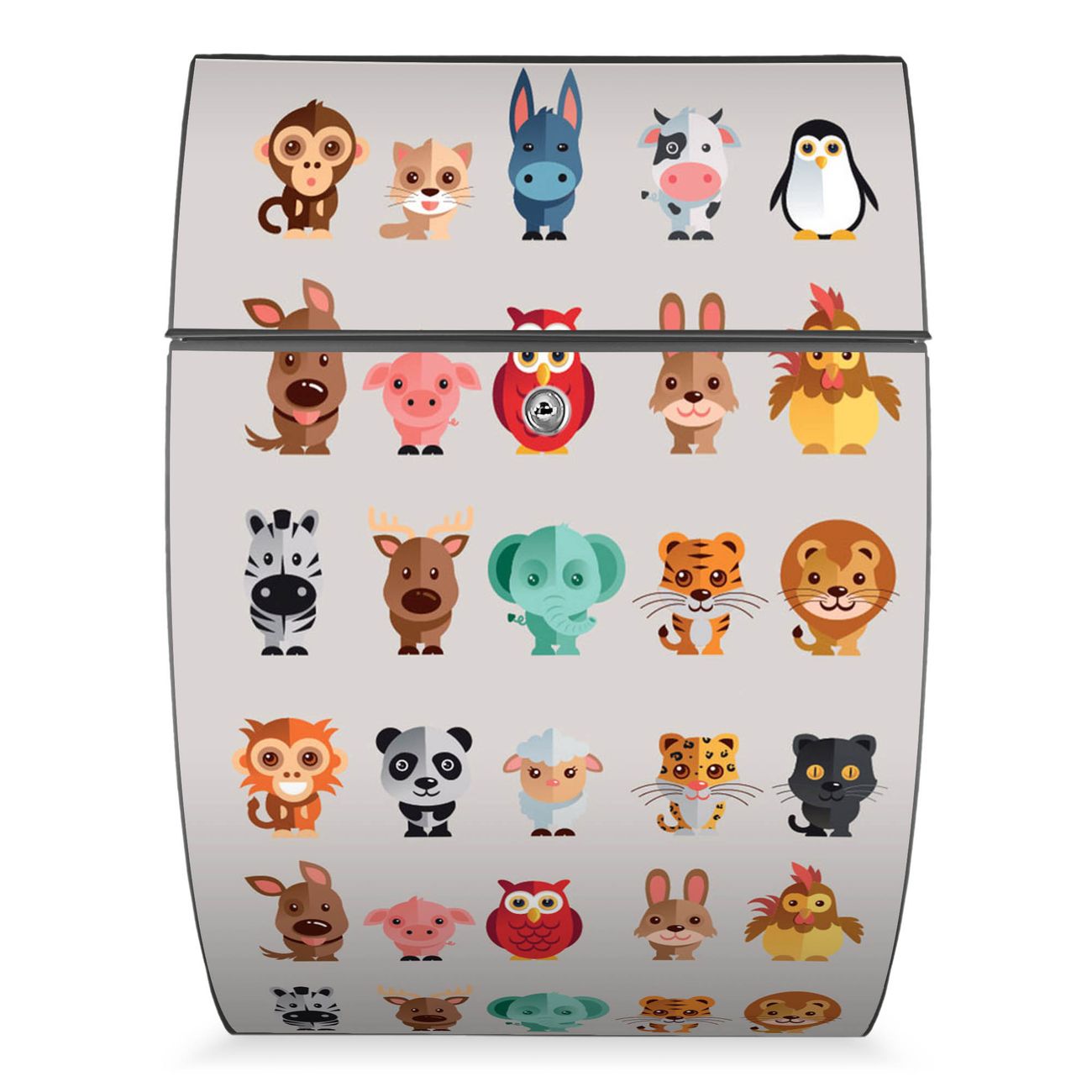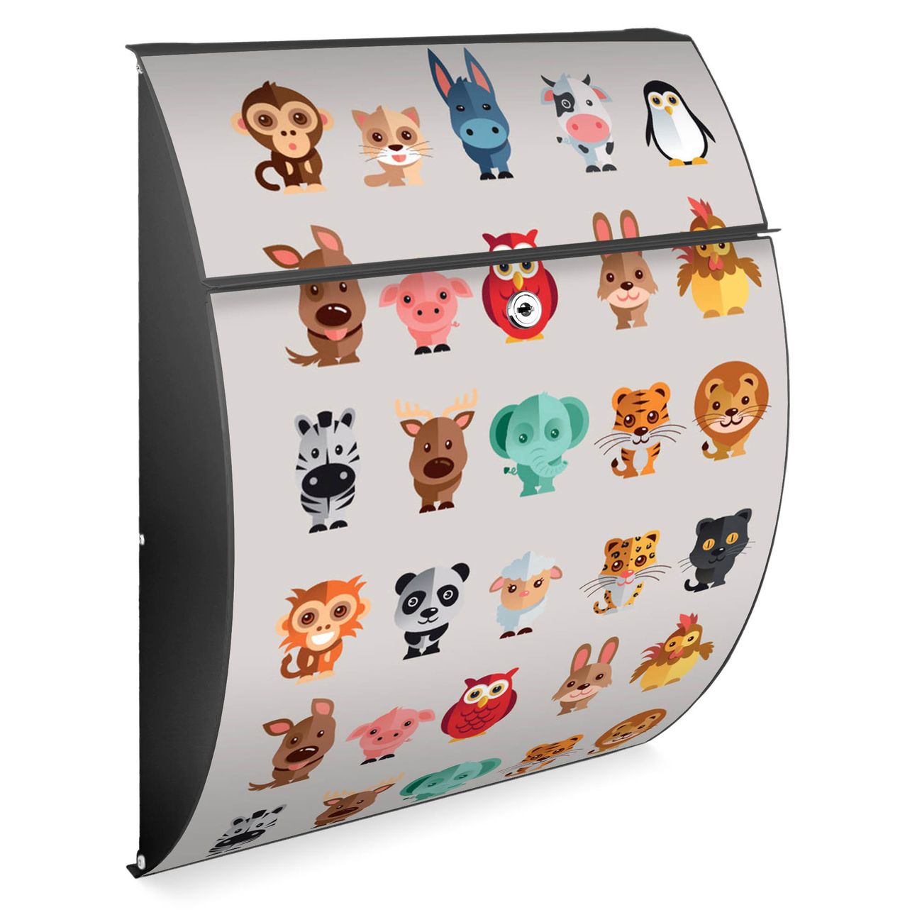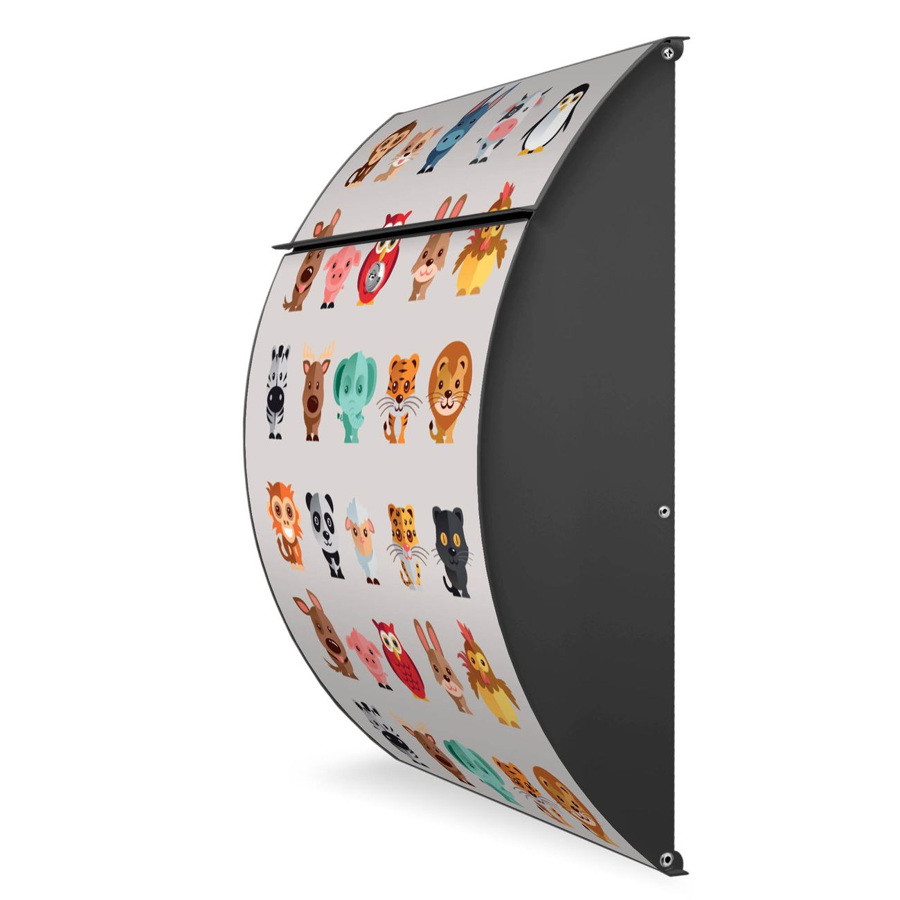 FUNKTION: DESIGN: Das Modell Riviera mit Motiv Freunde hat ein sehr ansprechendes und zeitloses Design. Heben Sie Sich von der tristen grauen Masse ab, ohne auf Funktionalität zu verzichten. Der integrierte Öffnungsstopp ermöglicht eine einfache Handhabung beim Entnehmen der Post. DETAILS: Der Postkasten besteht aus vollflächig verzinktem Stahl welcher in Anthrazit lackiert wurde. Das Motiv besteht aus einer wetter- und UV-festen Folie, die mit einem Schutzlaminat überzogen ist, durch die Ihren Briefkasten zusätzlich vor Kratzern geschützt ist. Sie erhalten 2 Schlüssel sowie das passende Montagematerial. NUTZEN: Sie können den Briefkasten sowohl als Wandbriefkasten montieren oder einen passenden Ständer kaufen und als Standbriefkasten einbetonieren. Die Größe bietet genügend Platz für Sendungen aller Art, der Einwurf fasst auch größere A4 Sendungen. BANJADO: Ihr Briefkasten wird in Sachsen in einer kleinen Manufaktur von Hand veredelt. Die Motivfolie ist lösungsmittelfrei und schutzlaminiert, dies sorgt für einen langen Halt. Wir legen großen Wert auf die Verbindung von Funktionalität und Design. Sie erhalten Handarbeit aus Sachsen.