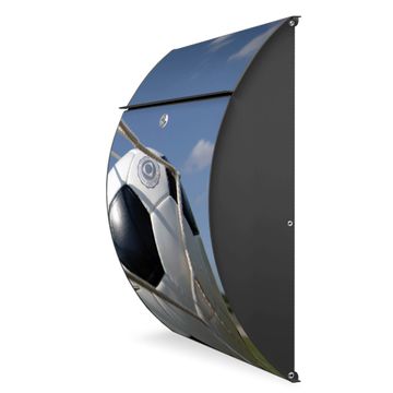 FUNKTION: DESIGN: Das Modell Riviera mit Motiv Fußball hat ein sehr ansprechendes und zeitloses Design. Heben Sie Sich von der tristen grauen Masse ab, ohne auf Funktionalität zu verzichten. Der integrierte Öffnungsstopp ermöglicht eine einfache Handhabung beim Entnehmen der Post. DETAILS: Der Postkasten besteht aus vollflächig verzinktem Stahl welcher in Anthrazit lackiert wurde. Das Motiv besteht aus einer wetter- und UV-festen Folie, die mit einem Schutzlaminat überzogen ist, durch die Ihren Briefkasten zusätzlich vor Kratzern geschützt ist. Sie erhalten 2 Schlüssel sowie das passende Montagematerial. NUTZEN: Sie können den Briefkasten sowohl als Wandbriefkasten montieren oder einen passenden Ständer kaufen und als Standbriefkasten einbetonieren. Die Größe bietet genügend Platz für Sendungen aller Art, der Einwurf fasst auch größere A4 Sendungen. BANJADO: Ihr Briefkasten wird in Sachsen in einer kleinen Manufaktur von Hand veredelt. Die Motivfolie ist lösungsmittelfrei und schutzlaminiert, dies sorgt für einen langen Halt. Wir legen großen Wert auf die Verbindung von Funktionalität und Design. Sie erhalten Handarbeit aus Sachsen.