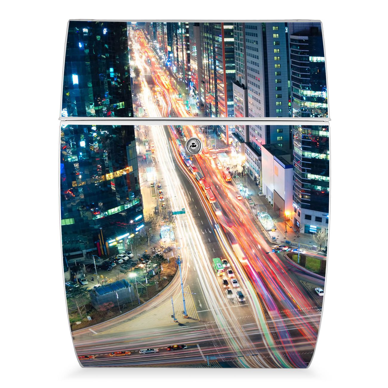 Der weiße Burg Wächter Design Briefkasten mit Motiv Gangnam Bei Nacht bietet Ihnen mit seinem Fassungsvermögen genügend Platz auch für große A4 Sendungen. Auf Wunsch können Sie bei uns auch den passenden Ständer kaufen und so aus dem Wandbriefkasten einen Standbriefkasten machen.