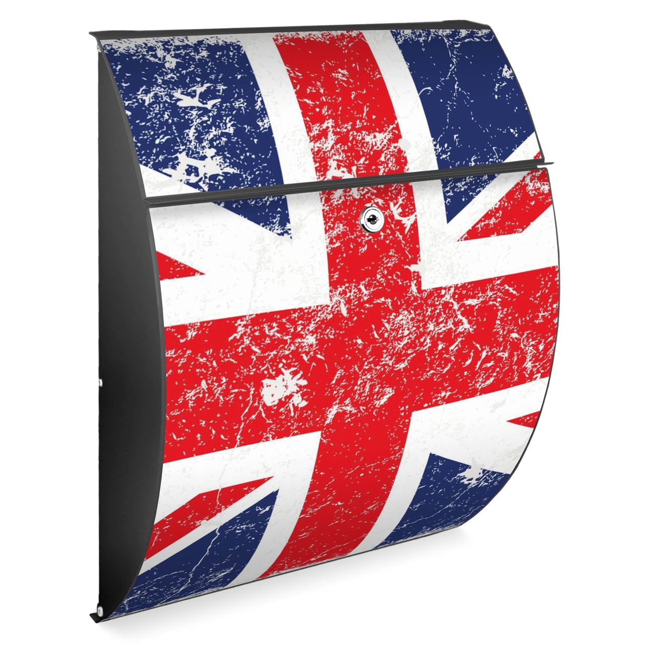 FUNKTION: DESIGN: Das Modell Riviera mit Motiv Great Britain hat ein sehr ansprechendes und zeitloses Design. Heben Sie Sich von der tristen grauen Masse ab, ohne auf Funktionalität zu verzichten. Der integrierte Öffnungsstopp ermöglicht eine einfache Handhabung beim Entnehmen der Post. DETAILS: Der Postkasten besteht aus vollflächig verzinktem Stahl welcher in Anthrazit lackiert wurde. Das Motiv besteht aus einer wetter- und UV-festen Folie, die mit einem Schutzlaminat überzogen ist, durch die Ihren Briefkasten zusätzlich vor Kratzern geschützt ist. Sie erhalten 2 Schlüssel sowie das passende Montagematerial. NUTZEN: Sie können den Briefkasten sowohl als Wandbriefkasten montieren oder einen passenden Ständer kaufen und als Standbriefkasten einbetonieren. Die Größe bietet genügend Platz für Sendungen aller Art, der Einwurf fasst auch größere A4 Sendungen. BANJADO: Ihr Briefkasten wird in Sachsen in einer kleinen Manufaktur von Hand veredelt. Die Motivfolie ist lösungsmittelfrei und schutzlaminiert, dies sorgt für einen langen Halt. Wir legen großen Wert auf die Verbindung von Funktionalität und Design. Sie erhalten Handarbeit aus Sachsen.