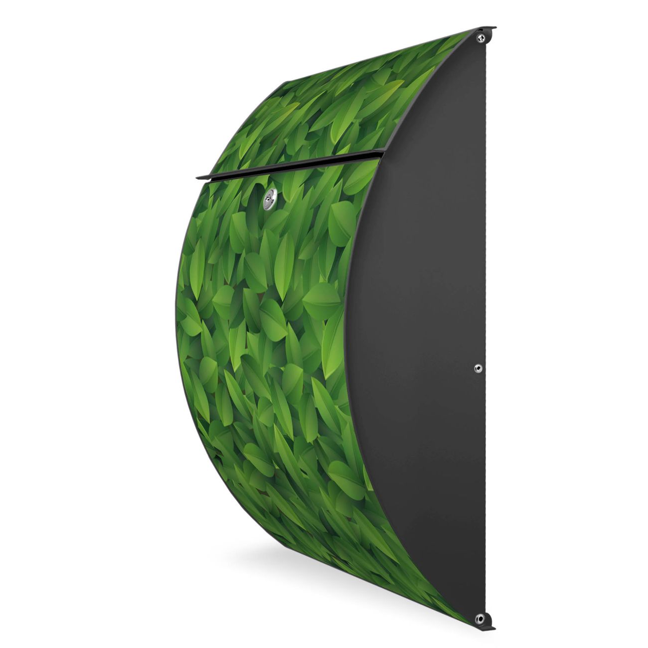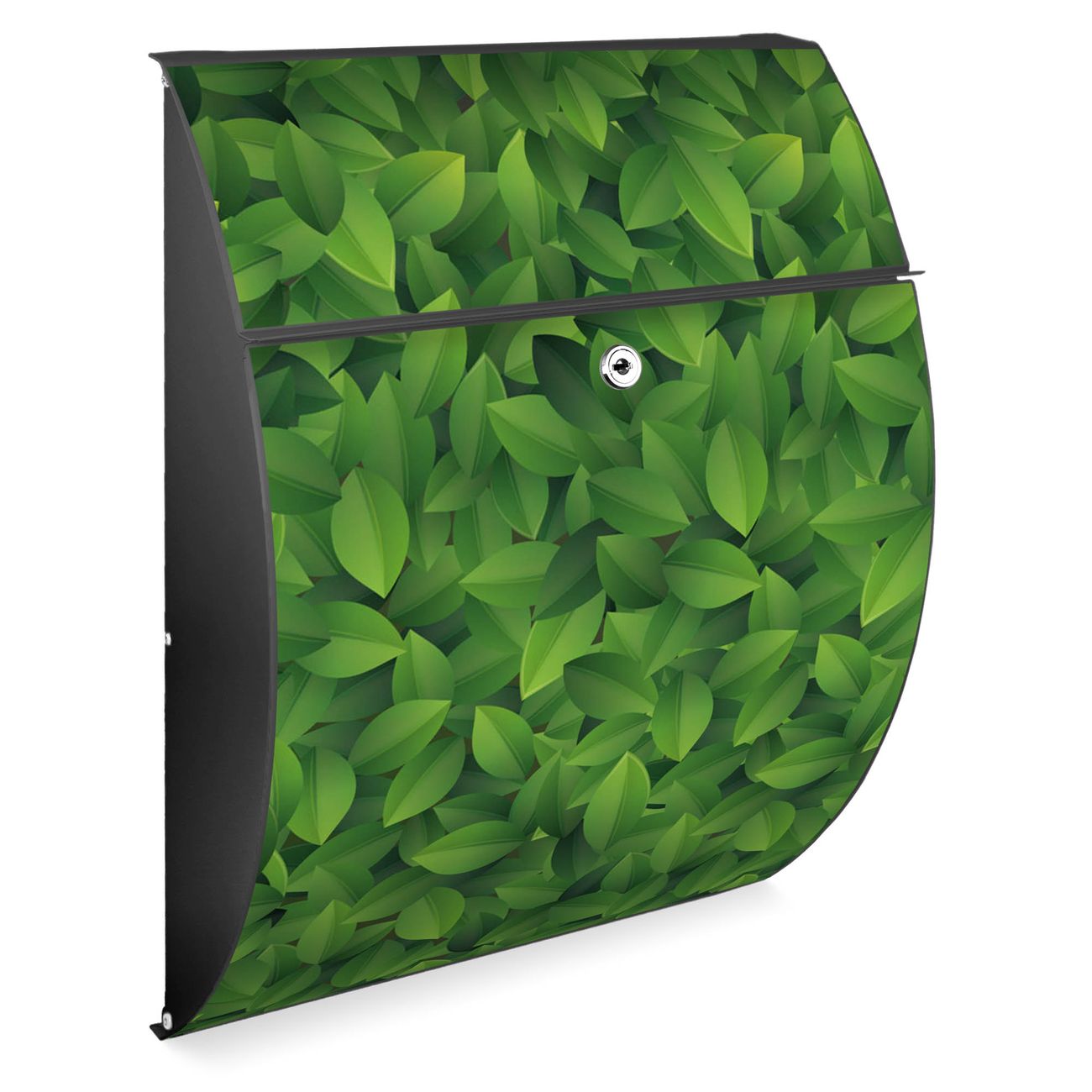 FUNKTION: DESIGN: Das Modell Riviera mit Motiv Grüne Blätter hat ein sehr ansprechendes und zeitloses Design. Heben Sie Sich von der tristen grauen Masse ab, ohne auf Funktionalität zu verzichten. Der integrierte Öffnungsstopp ermöglicht eine einfache Handhabung beim Entnehmen der Post. DETAILS: Der Postkasten besteht aus vollflächig verzinktem Stahl welcher in Anthrazit lackiert wurde. Das Motiv besteht aus einer wetter- und UV-festen Folie, die mit einem Schutzlaminat überzogen ist, durch die Ihren Briefkasten zusätzlich vor Kratzern geschützt ist. Sie erhalten 2 Schlüssel sowie das passende Montagematerial. NUTZEN: Sie können den Briefkasten sowohl als Wandbriefkasten montieren oder einen passenden Ständer kaufen und als Standbriefkasten einbetonieren. Die Größe bietet genügend Platz für Sendungen aller Art, der Einwurf fasst auch größere A4 Sendungen. BANJADO: Ihr Briefkasten wird in Sachsen in einer kleinen Manufaktur von Hand veredelt. Die Motivfolie ist lösungsmittelfrei und schutzlaminiert, dies sorgt für einen langen Halt. Wir legen großen Wert auf die Verbindung von Funktionalität und Design. Sie erhalten Handarbeit aus Sachsen.