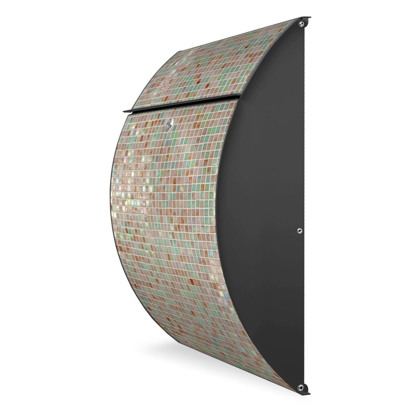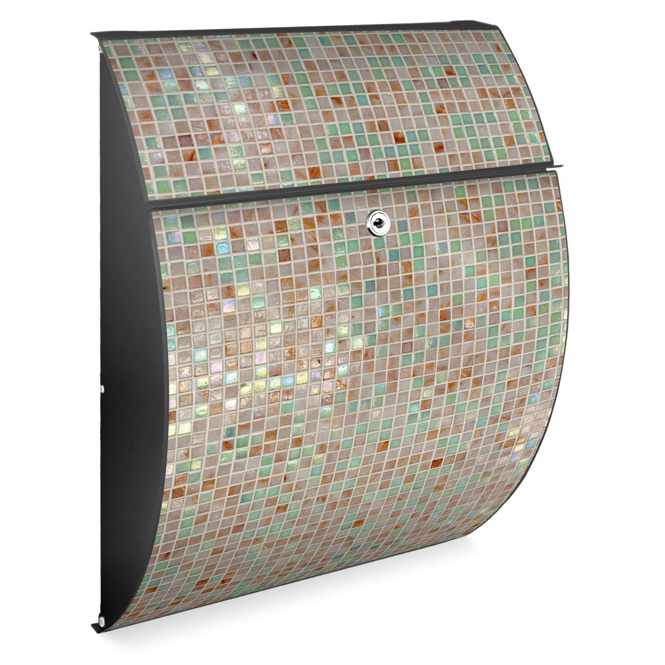 FUNKTION: DESIGN: Das Modell Riviera mit Motiv Grüne Fliesen hat ein sehr ansprechendes und zeitloses Design. Heben Sie Sich von der tristen grauen Masse ab, ohne auf Funktionalität zu verzichten. Der integrierte Öffnungsstopp ermöglicht eine einfache Handhabung beim Entnehmen der Post. DETAILS: Der Postkasten besteht aus vollflächig verzinktem Stahl welcher in Anthrazit lackiert wurde. Das Motiv besteht aus einer wetter- und UV-festen Folie, die mit einem Schutzlaminat überzogen ist, durch die Ihren Briefkasten zusätzlich vor Kratzern geschützt ist. Sie erhalten 2 Schlüssel sowie das passende Montagematerial. NUTZEN: Sie können den Briefkasten sowohl als Wandbriefkasten montieren oder einen passenden Ständer kaufen und als Standbriefkasten einbetonieren. Die Größe bietet genügend Platz für Sendungen aller Art, der Einwurf fasst auch größere A4 Sendungen. BANJADO: Ihr Briefkasten wird in Sachsen in einer kleinen Manufaktur von Hand veredelt. Die Motivfolie ist lösungsmittelfrei und schutzlaminiert, dies sorgt für einen langen Halt. Wir legen großen Wert auf die Verbindung von Funktionalität und Design. Sie erhalten Handarbeit aus Sachsen.