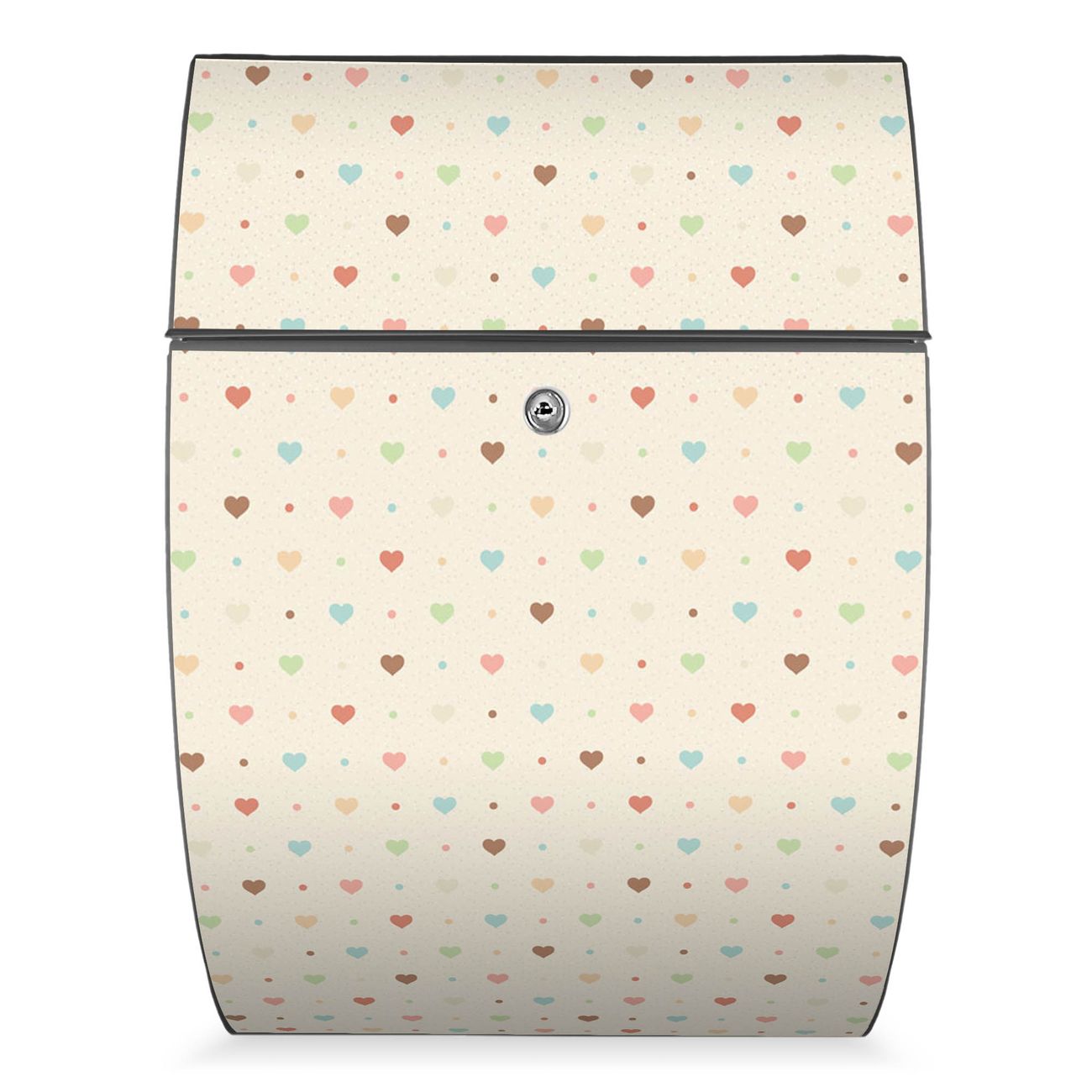 Der Burg Wächter Design Briefkasten mit Motiv Herzen bunt bietet Ihnen mit seinem Fassungsvermögen genügend Platz auch für große A4 Sendungen. Auf Wunsch können Sie bei uns den passenden Ständer kaufen und so aus dem Wandbriefkasten einen Standbriefkasten machen.