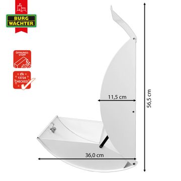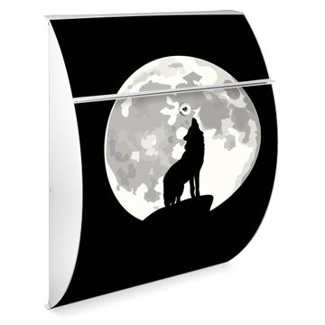 Der weiße Burg Wächter Design Briefkasten mit Motiv Heulender Wolf SW bietet Ihnen mit seinem Fassungsvermögen genügend Platz auch für große A4 Sendungen. Auf Wunsch können Sie bei uns auch den passenden Ständer kaufen und so aus dem Wandbriefkasten einen Standbriefkasten machen.
