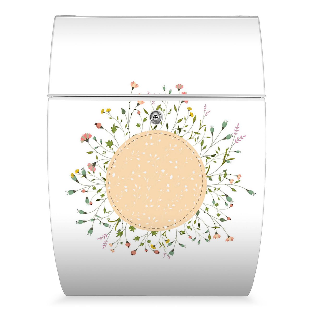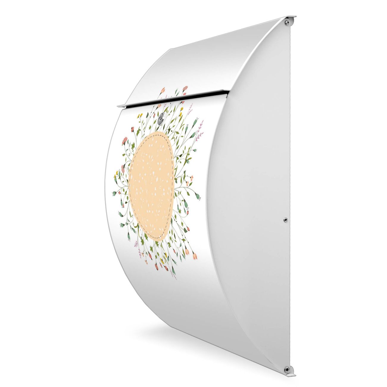 Der weiße Burg Wächter Design Briefkasten mit Motiv Hibiskus Kreis bietet Ihnen mit seinem Fassungsvermögen genügend Platz auch für große A4 Sendungen. Auf Wunsch können Sie bei uns auch den passenden Ständer kaufen und so aus dem Wandbriefkasten einen Standbriefkasten machen.