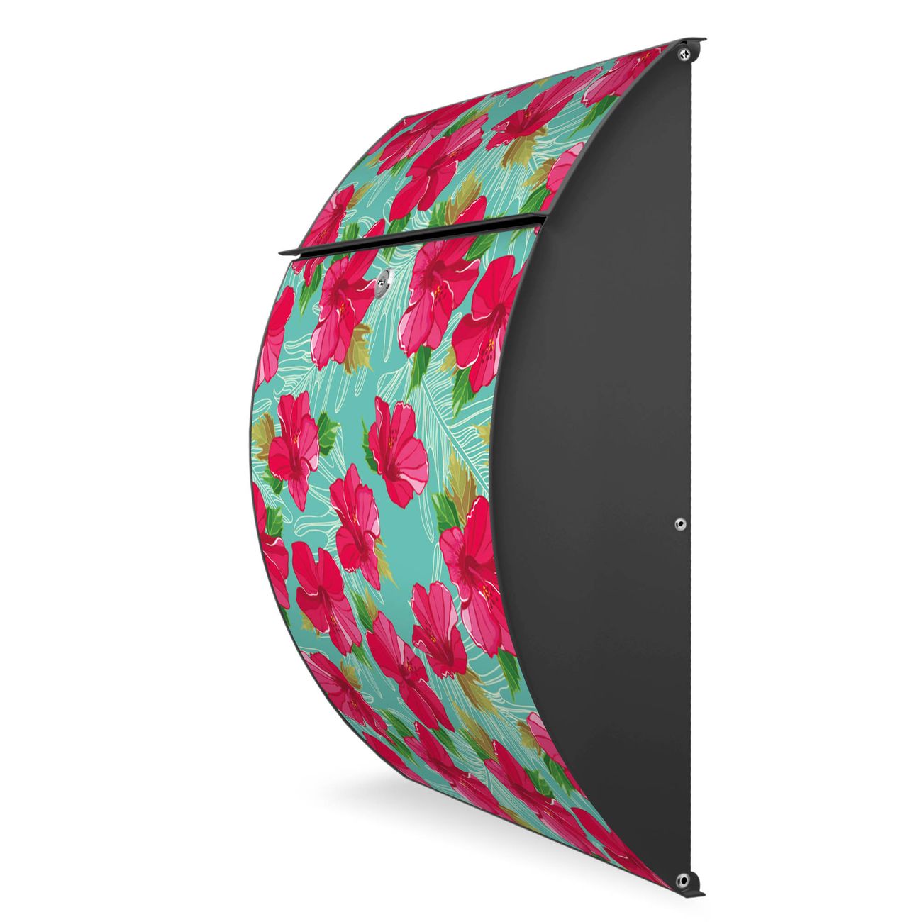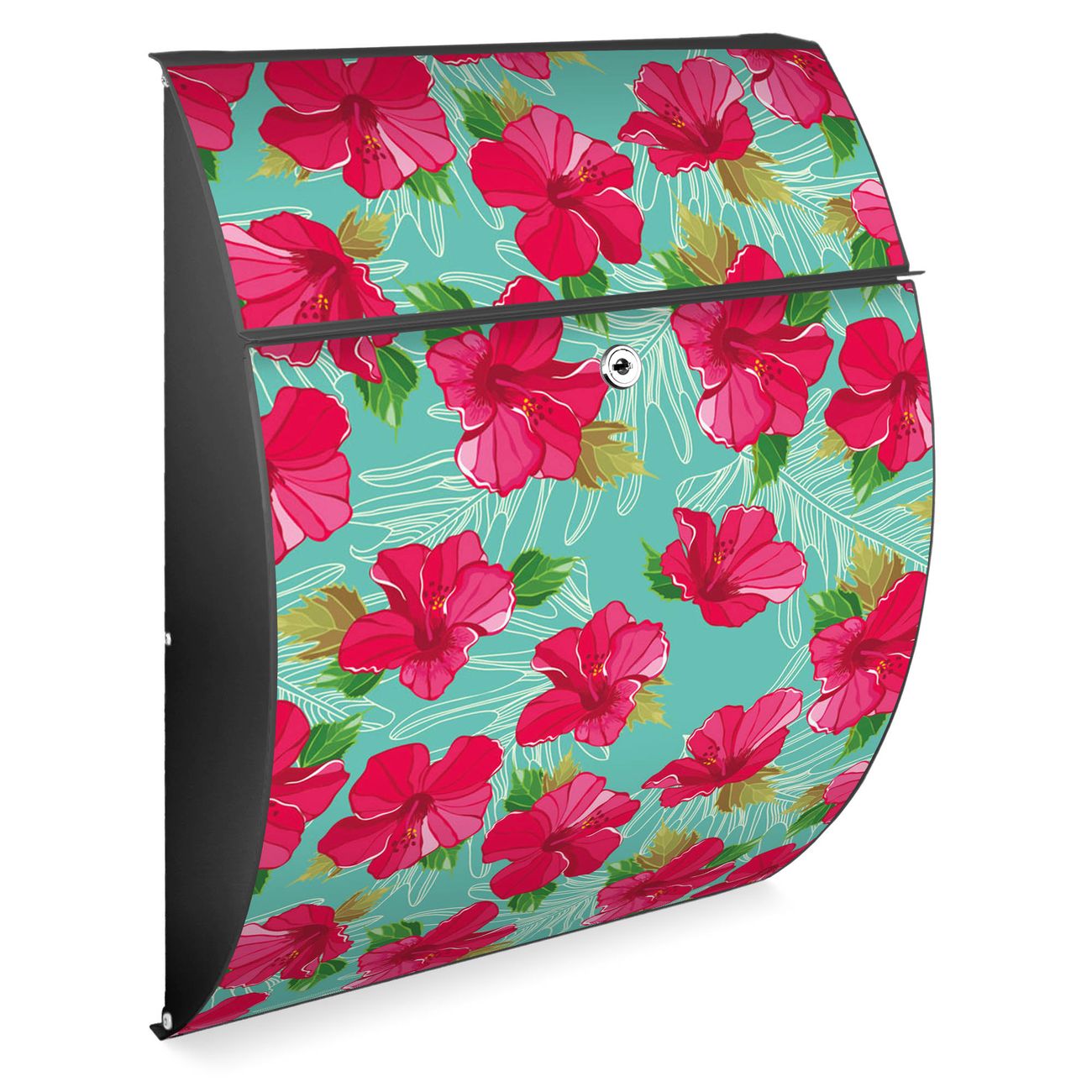 FUNKTION: DESIGN: Das Modell Riviera mit Motiv Hibiskus hat ein sehr ansprechendes und zeitloses Design. Heben Sie Sich von der tristen grauen Masse ab, ohne auf Funktionalität zu verzichten. Der integrierte Öffnungsstopp ermöglicht eine einfache Handhabung beim Entnehmen der Post. DETAILS: Der Postkasten besteht aus vollflächig verzinktem Stahl welcher in Anthrazit lackiert wurde. Das Motiv besteht aus einer wetter- und UV-festen Folie, die mit einem Schutzlaminat überzogen ist, durch die Ihren Briefkasten zusätzlich vor Kratzern geschützt ist. Sie erhalten 2 Schlüssel sowie das passende Montagematerial. NUTZEN: Sie können den Briefkasten sowohl als Wandbriefkasten montieren oder einen passenden Ständer kaufen und als Standbriefkasten einbetonieren. Die Größe bietet genügend Platz für Sendungen aller Art, der Einwurf fasst auch größere A4 Sendungen. BANJADO: Ihr Briefkasten wird in Sachsen in einer kleinen Manufaktur von Hand veredelt. Die Motivfolie ist lösungsmittelfrei und schutzlaminiert, dies sorgt für einen langen Halt. Wir legen großen Wert auf die Verbindung von Funktionalität und Design. Sie erhalten Handarbeit aus Sachsen.